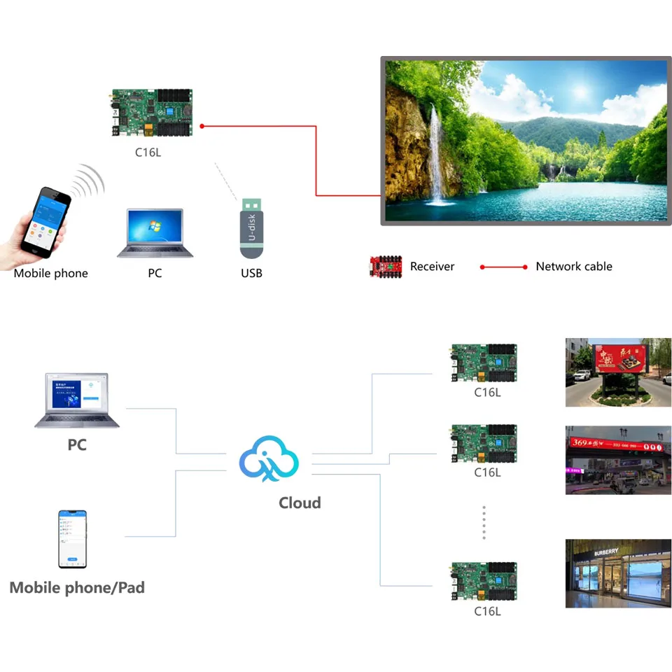 Comprar YCX venta HD-C16L tarjeta de control de panel led controlador wifi a todo color placa de sistema de módulo hub75