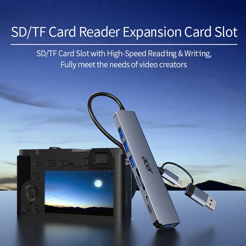 YINDIAOxACER 8 en 2 USB + tipo C HUB estación de acoplamiento con Audio de 3,5mm lector de tarjetas Micro SD portátil tableta teléfono convertidor de disco