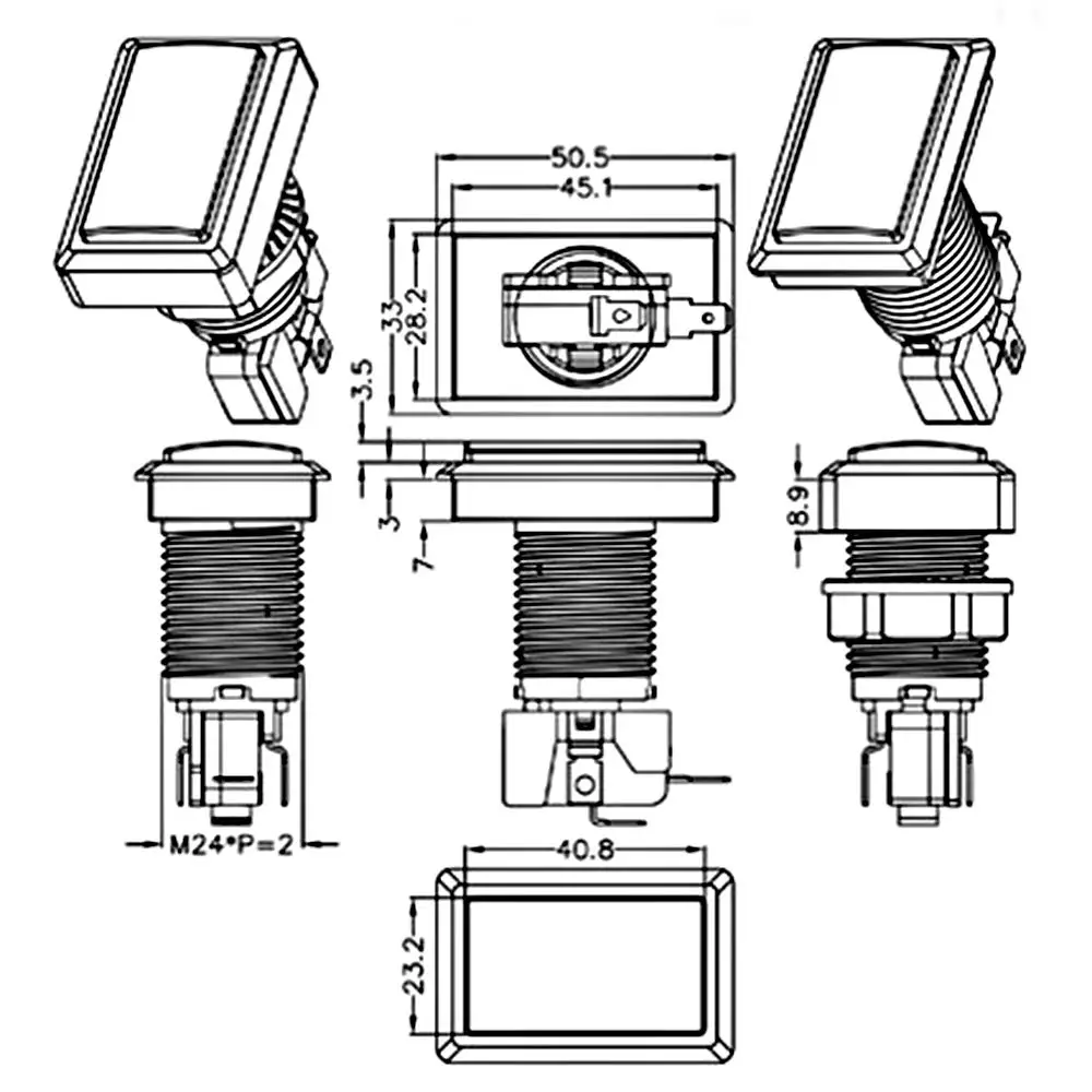 Botón Arcade LED12V 1Pc máquina de juegos Botón Arcade Rectángulo con lámpara LED iluminada 5 colores