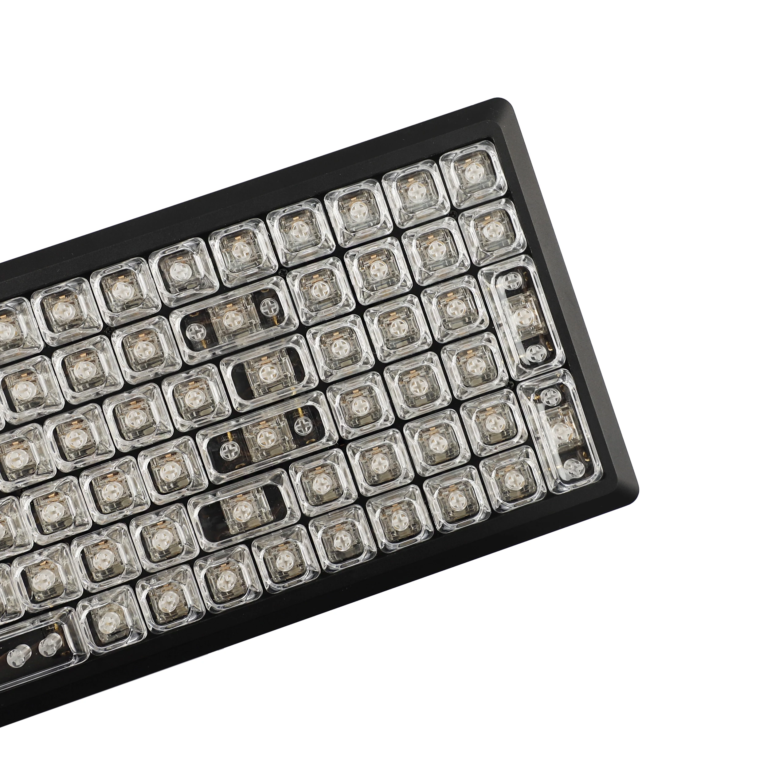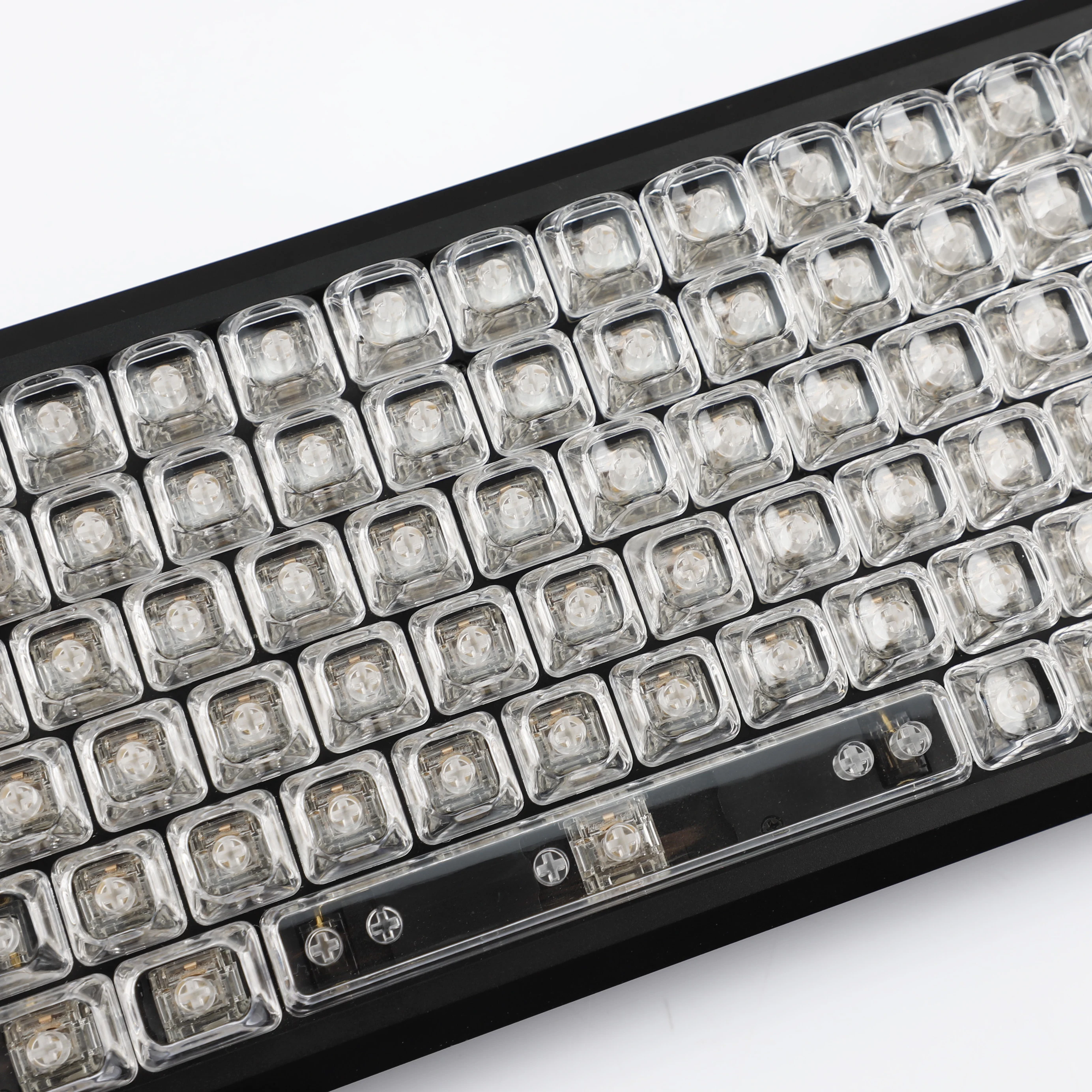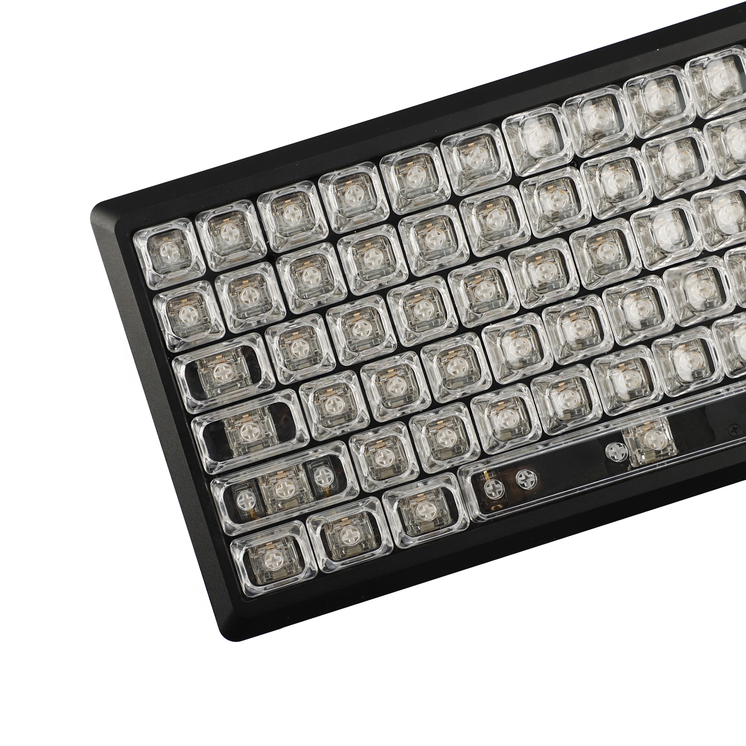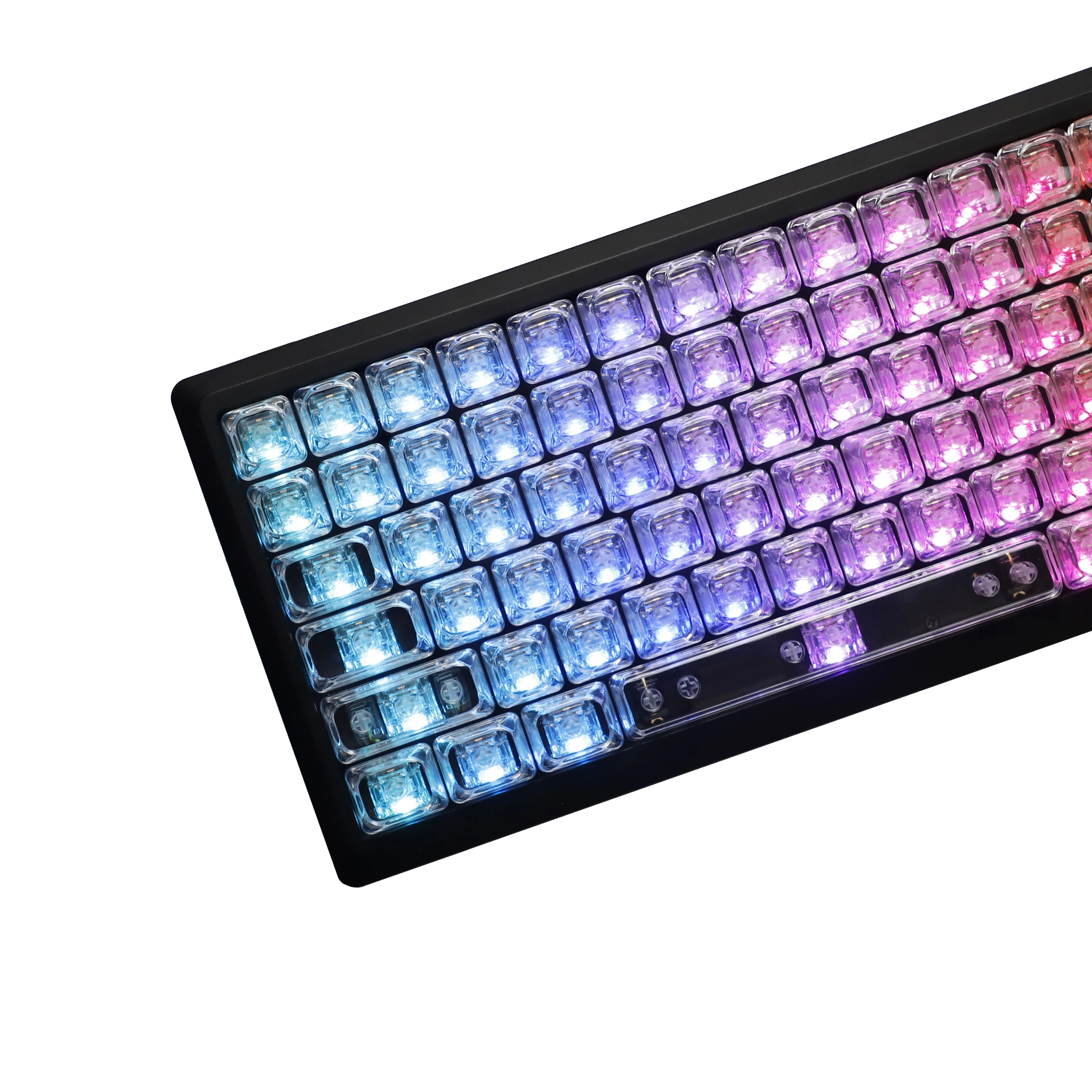 Las teclas transparentes están hechas de material de PC.Las características transparentes del material de PC no solo añaden una belleza única a las teclas, sino que también combinan con la retroiluminación del teclado, la luz puede pasar a través de las teclas de manera uniforme y suave, creando un efecto visual de ensueño.