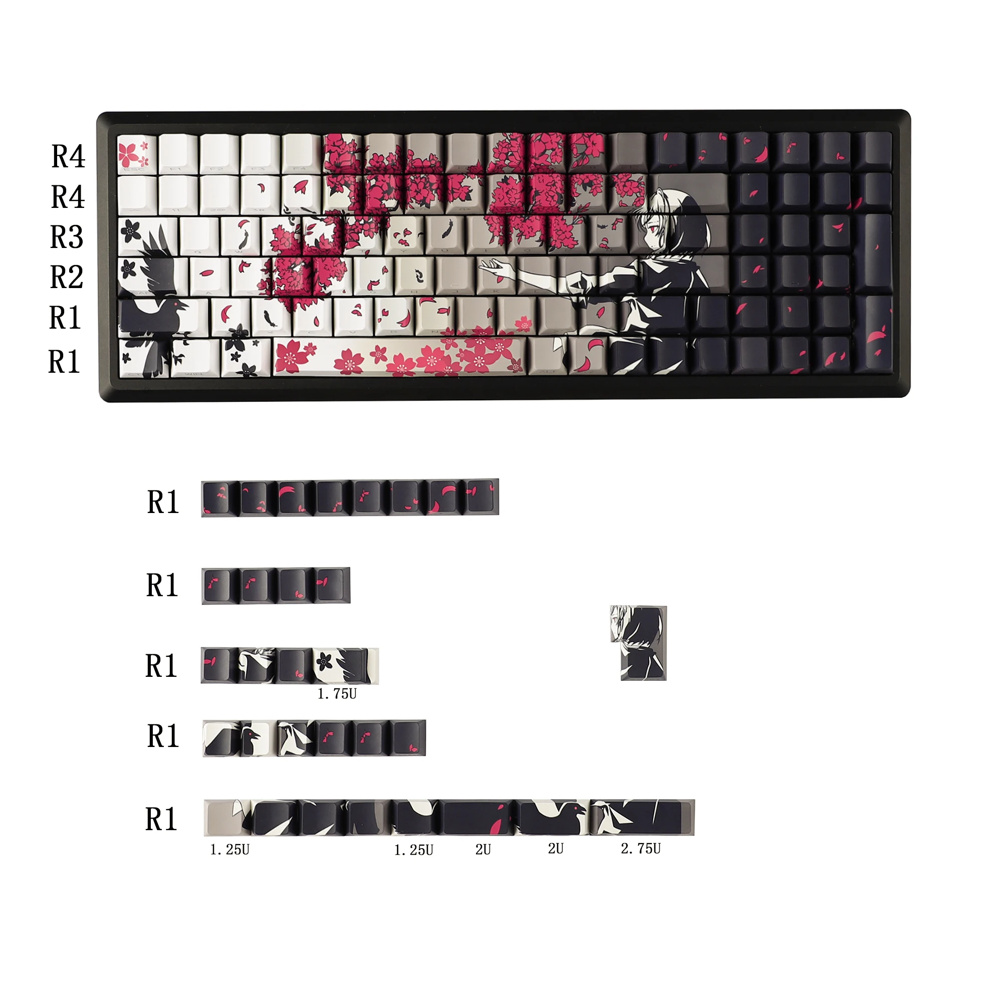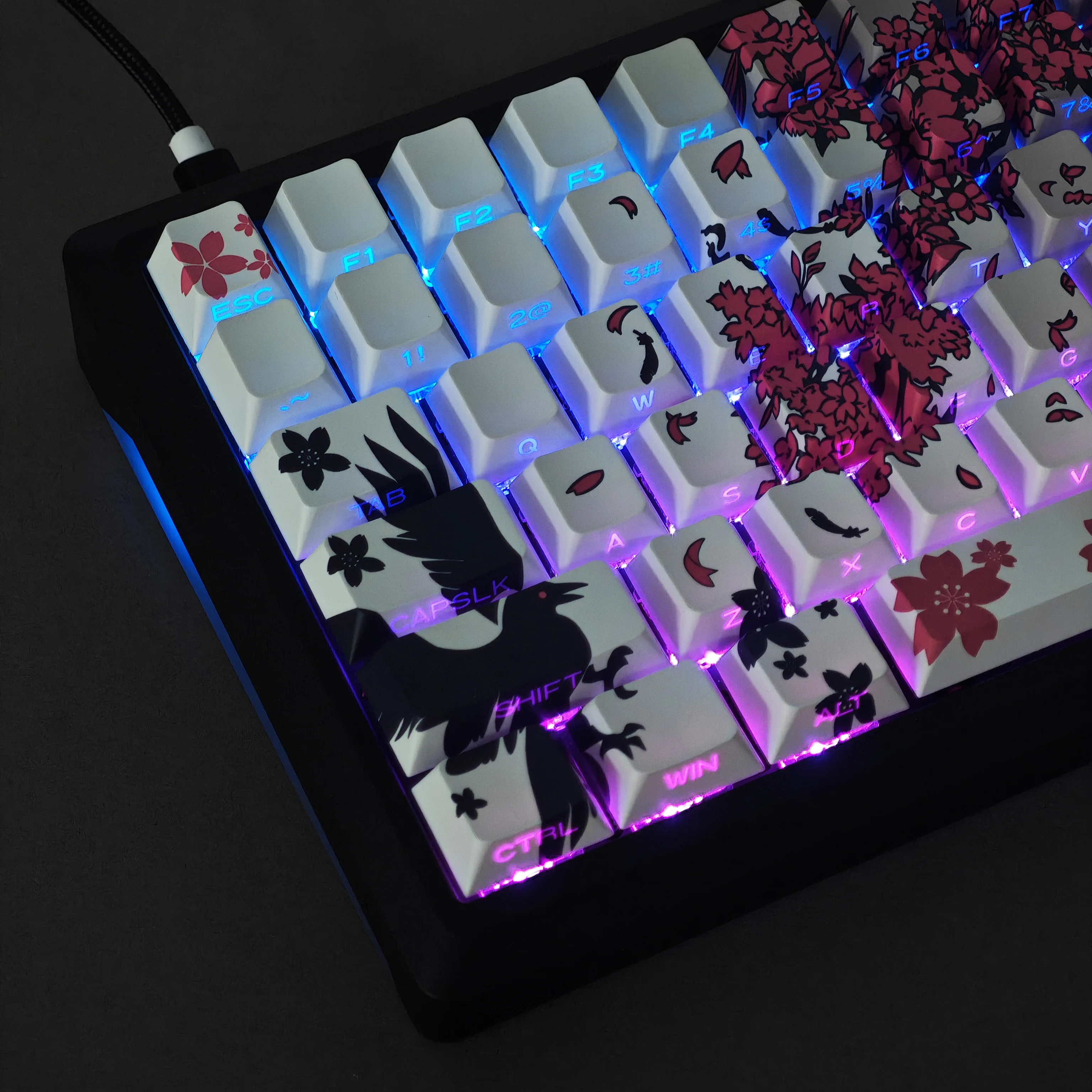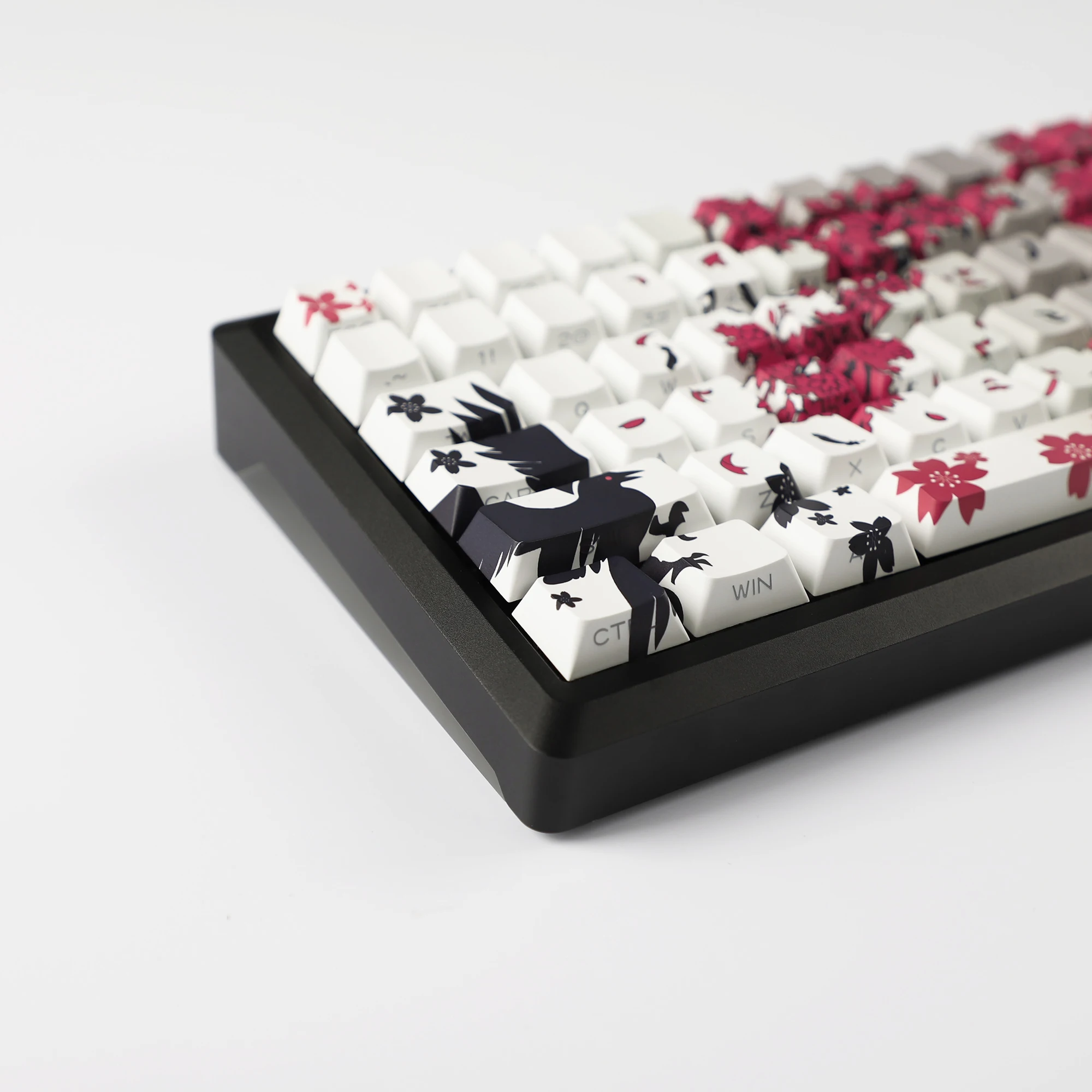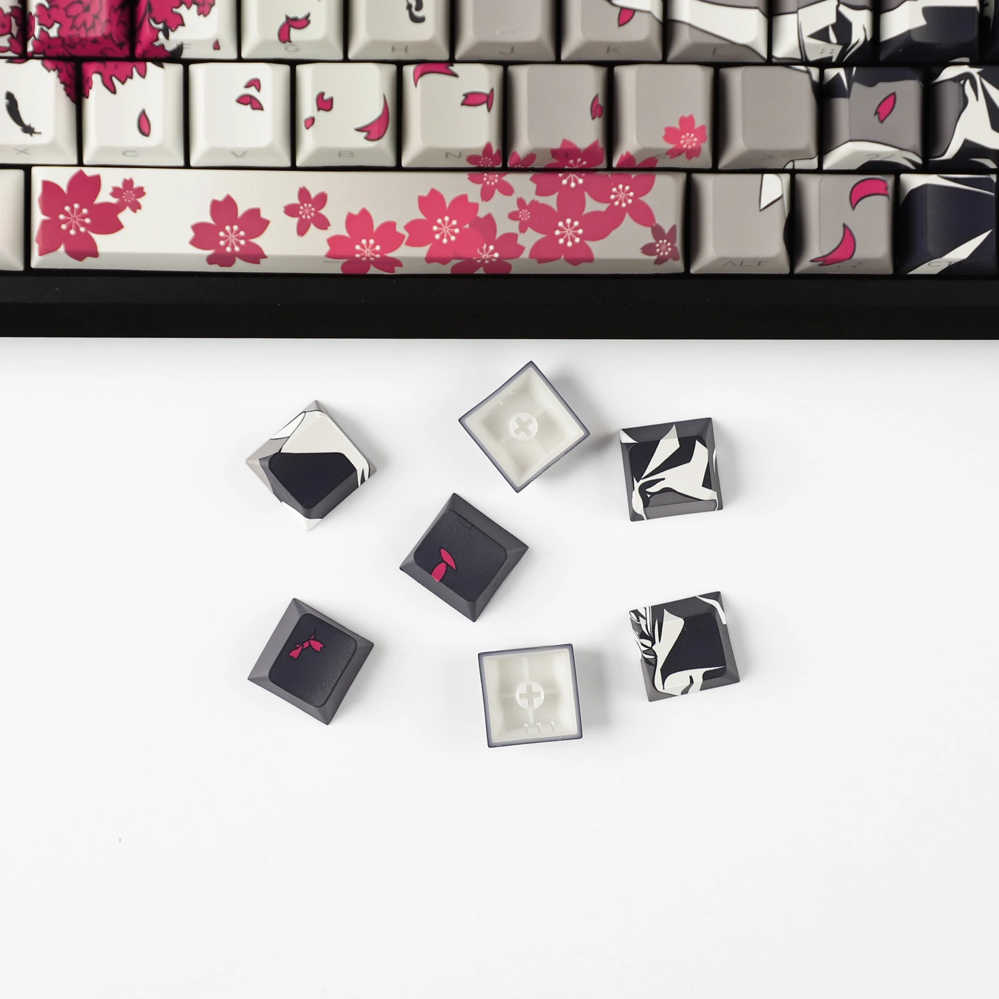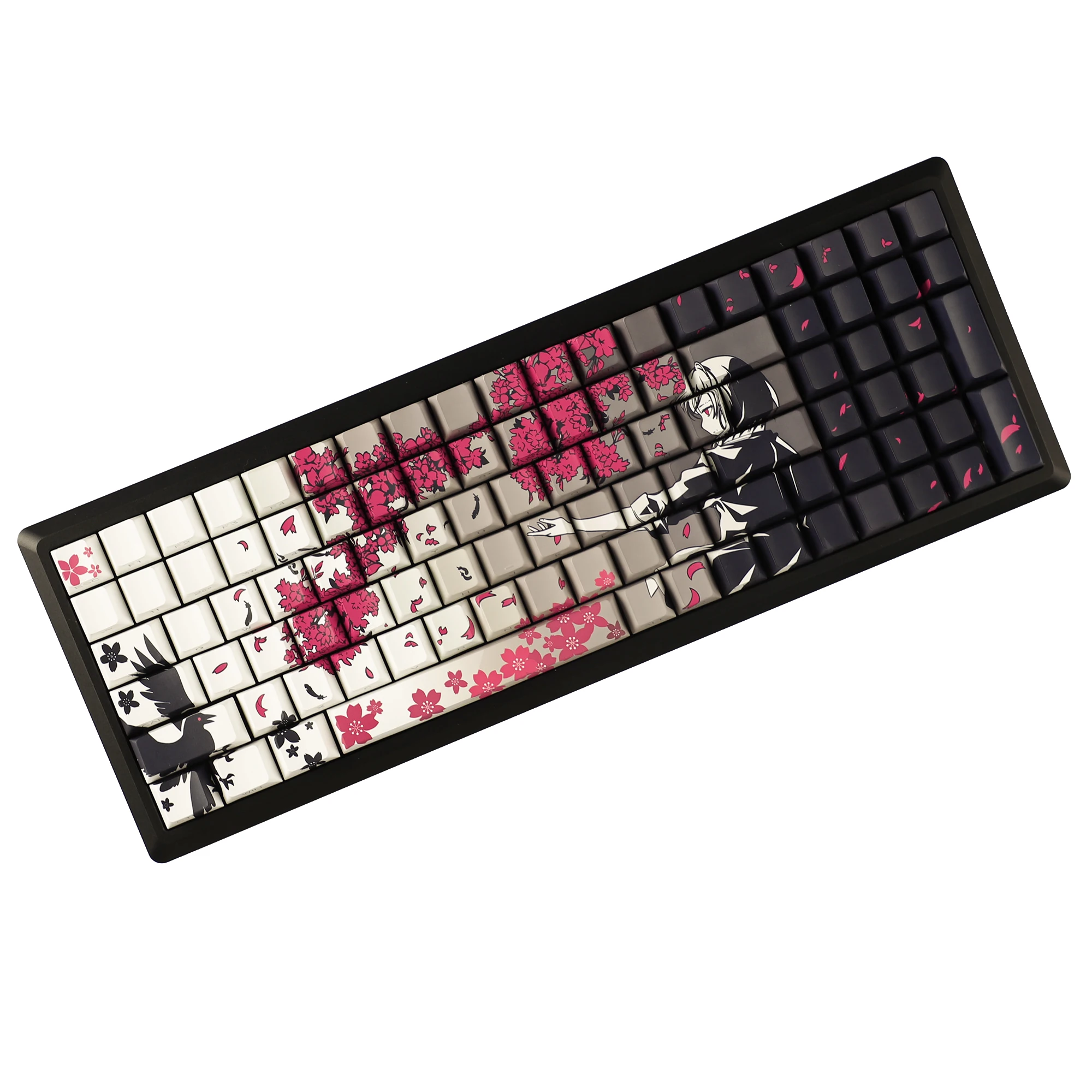 Comprar YMDK 131 gris Raven Sakura Keycap Cherry perfil doble disparo lateral brillo a través de teclas PBT para teclado mecánico MX
