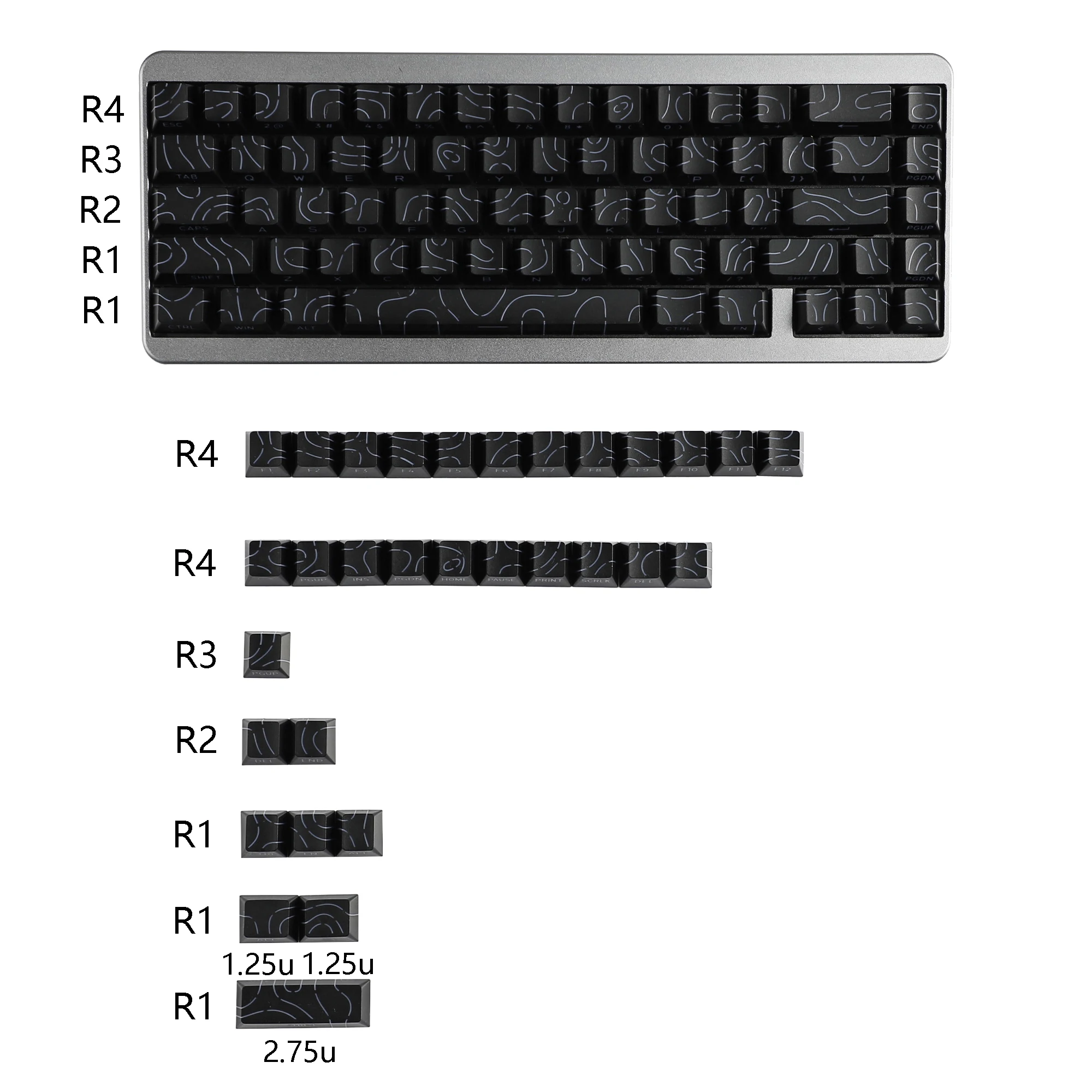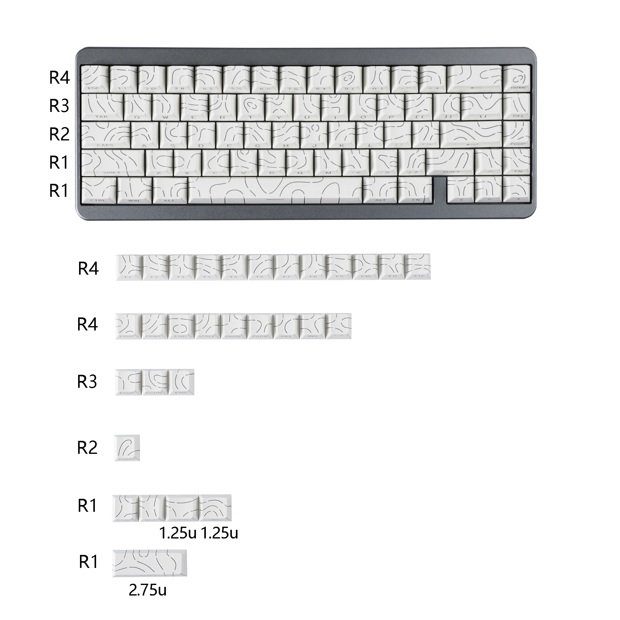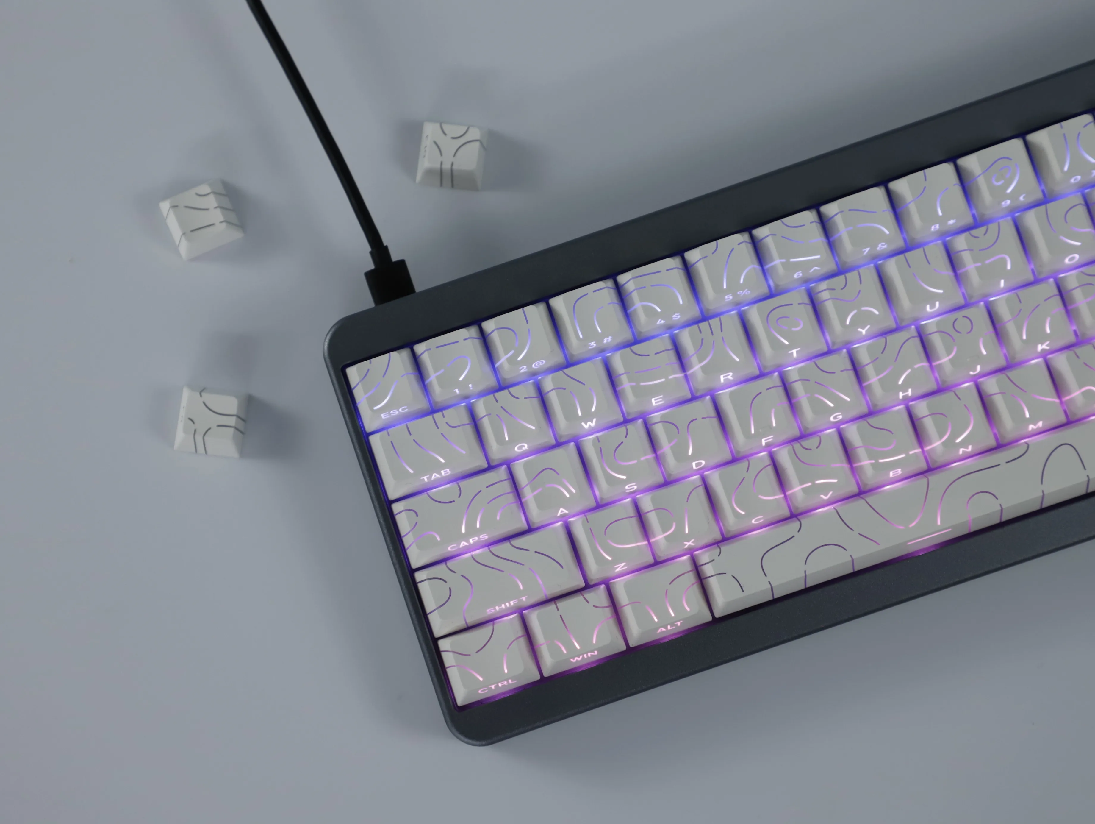 Sólo 1 × 97 teclas Teclas de luz lateral de línea de contorno blanca + extractor de teclas
