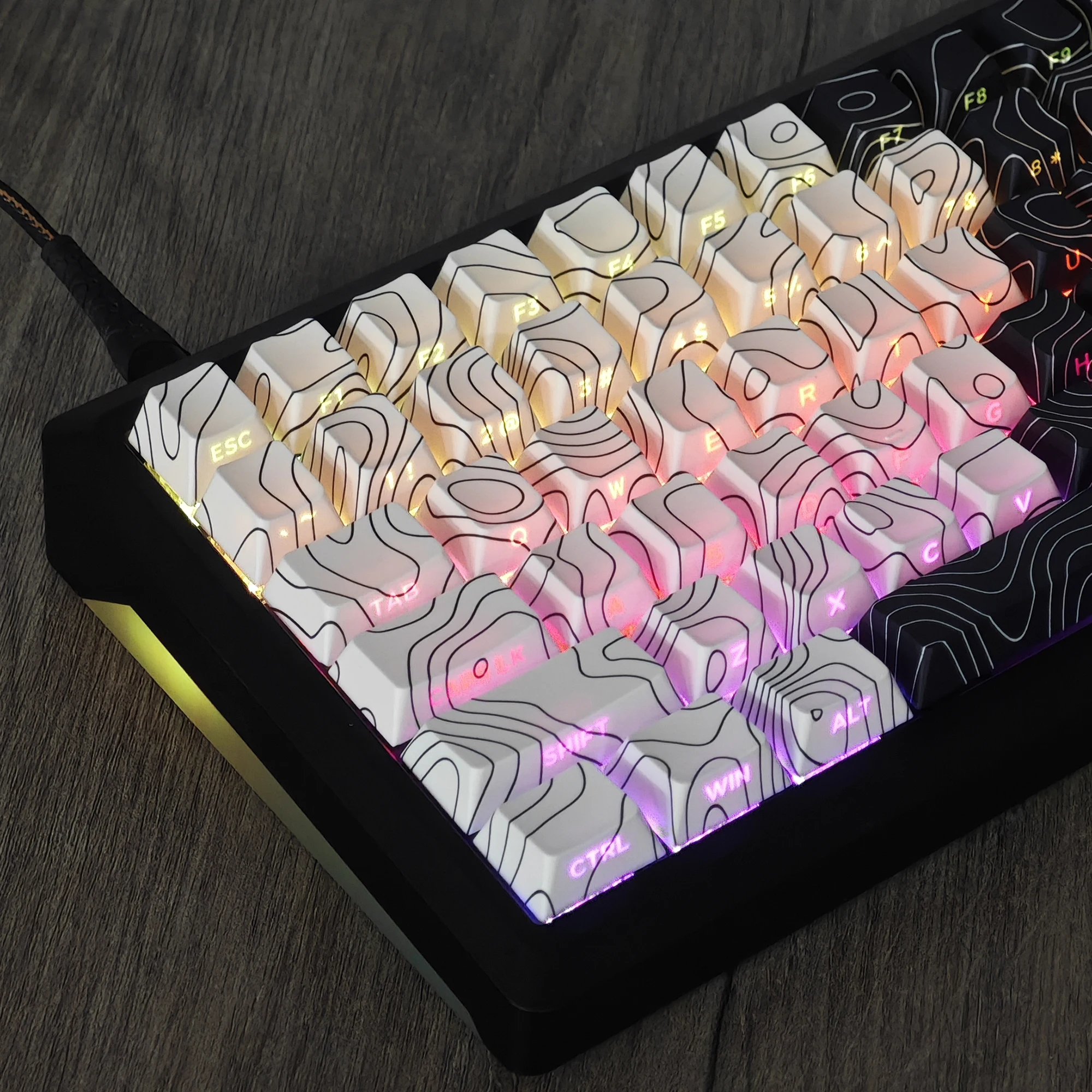Teclas de doble disparo PBT con iluminación lateral de línea de contorno de perfil de cerezo de 130