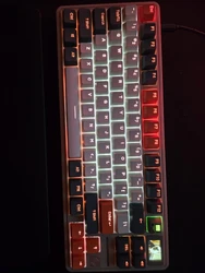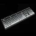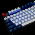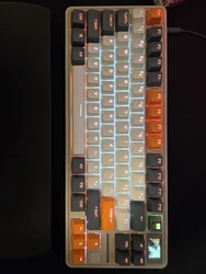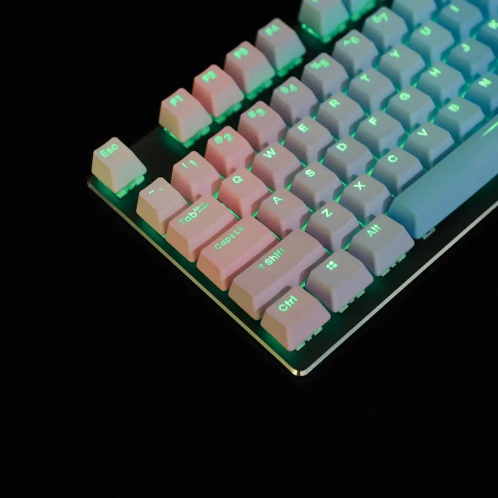 La tapa de la tecla está hecha de material PBT, es de doble disparo y teñido para que pueda dejar pasar el brillo.