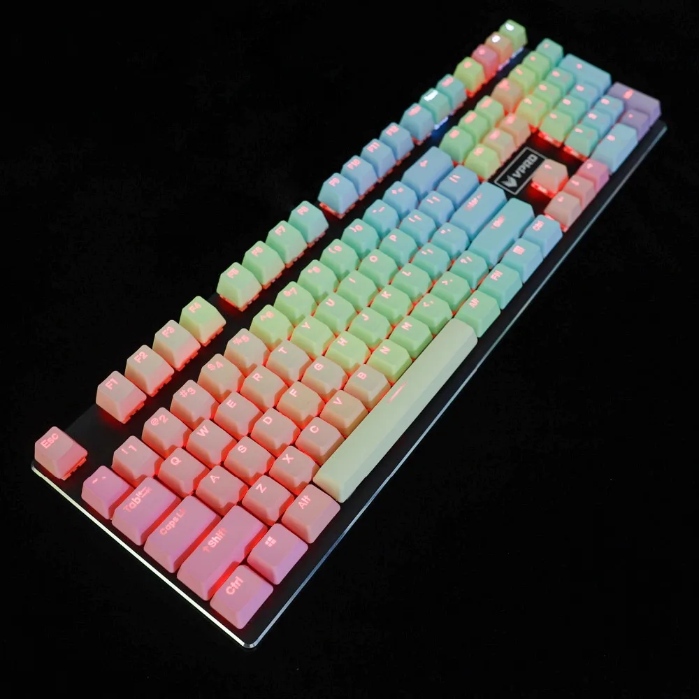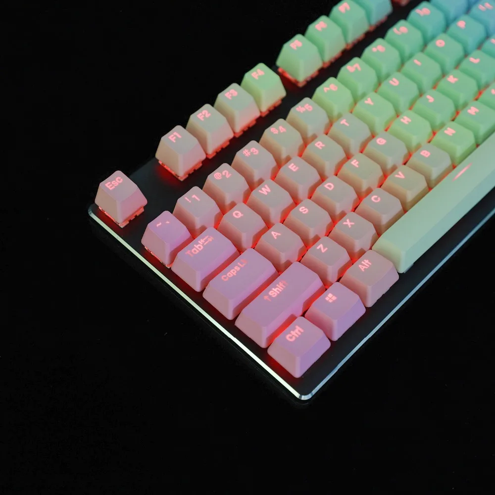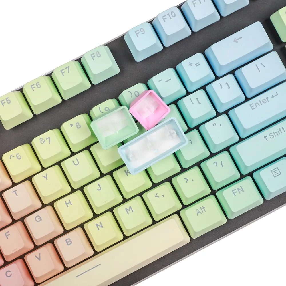 Comprar YMDK-Teclado mecánico con doble tiro 108 teñido PBT brillo a través del perfil OEM Rainbow Carbon Sunset Hana Keycap para interruptores MX