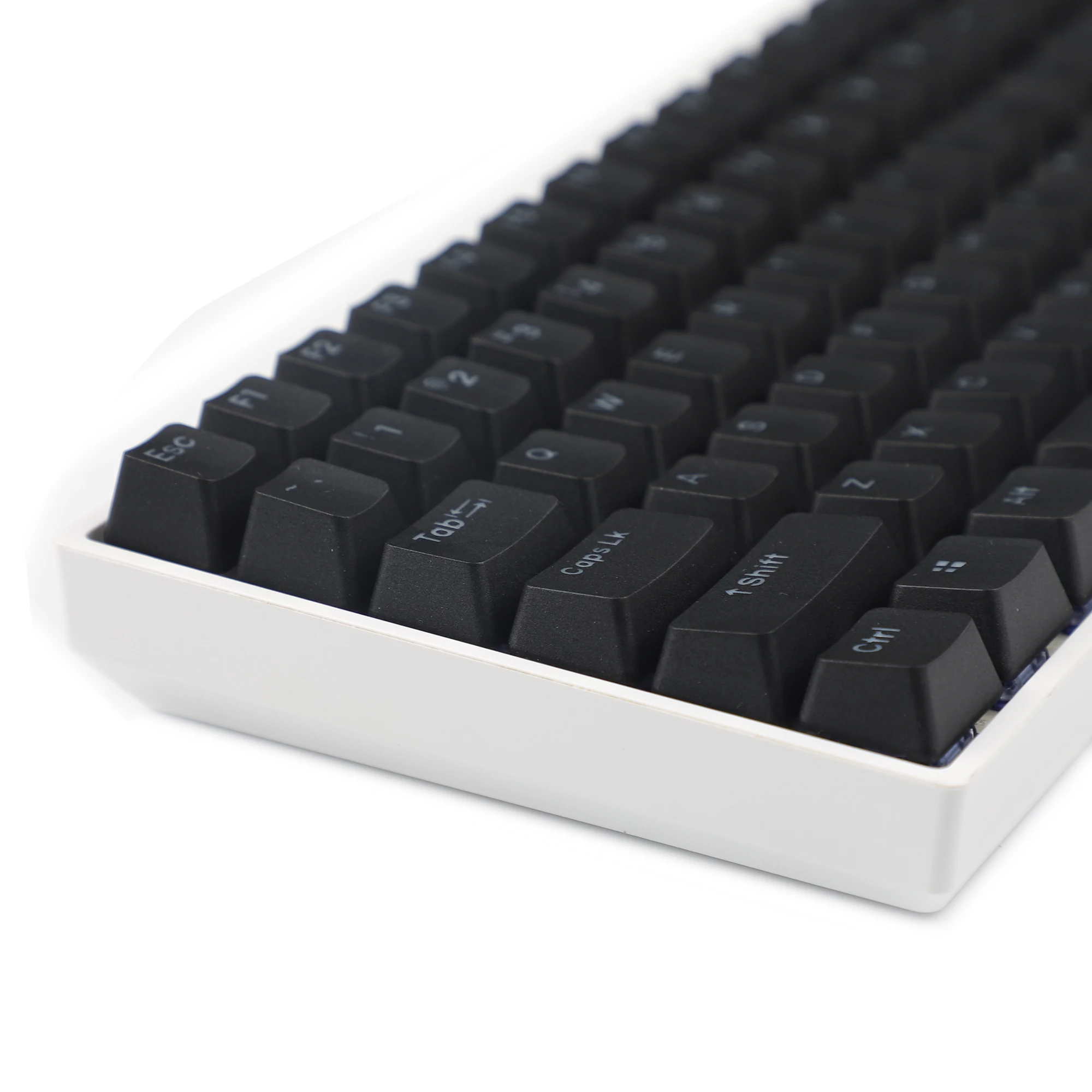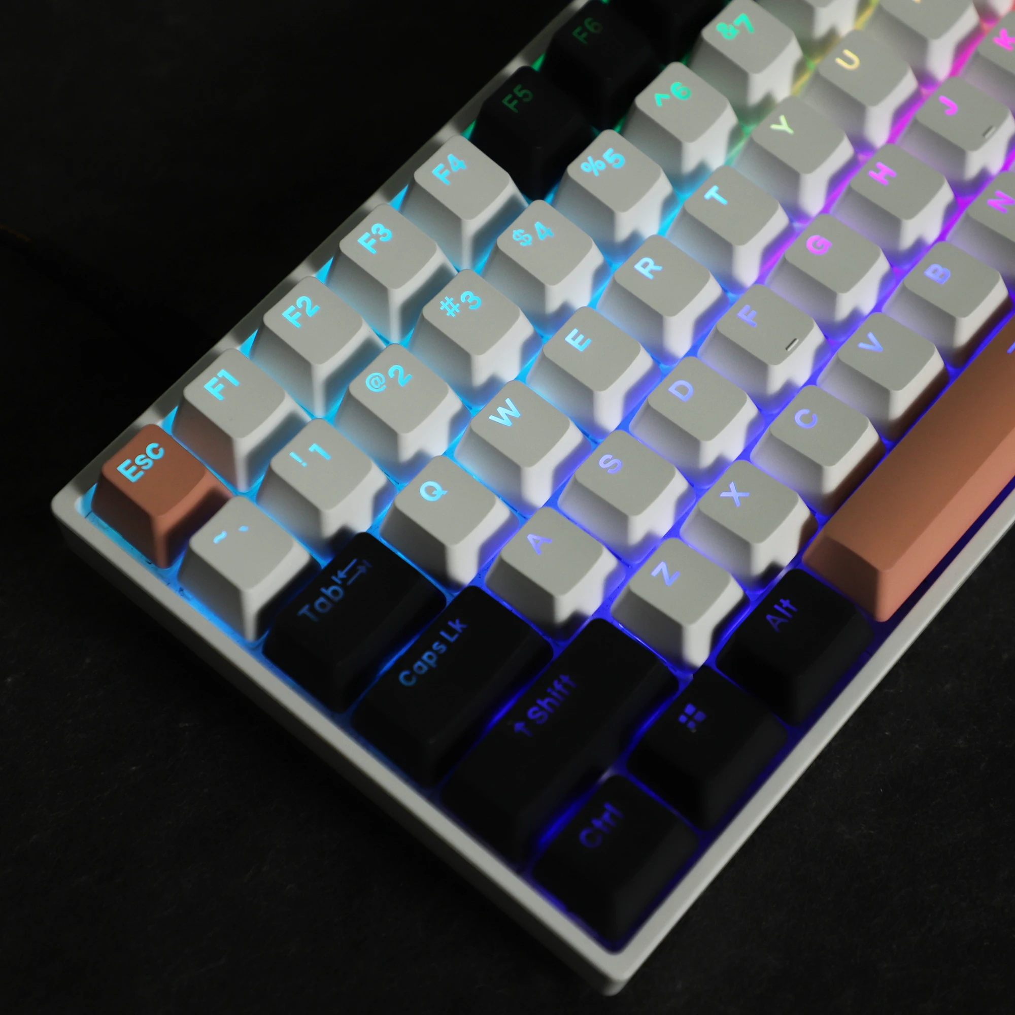 La tapa de la tecla está hecha de material PBT, es de doble disparo y teñido para que pueda dejar pasar el brillo.