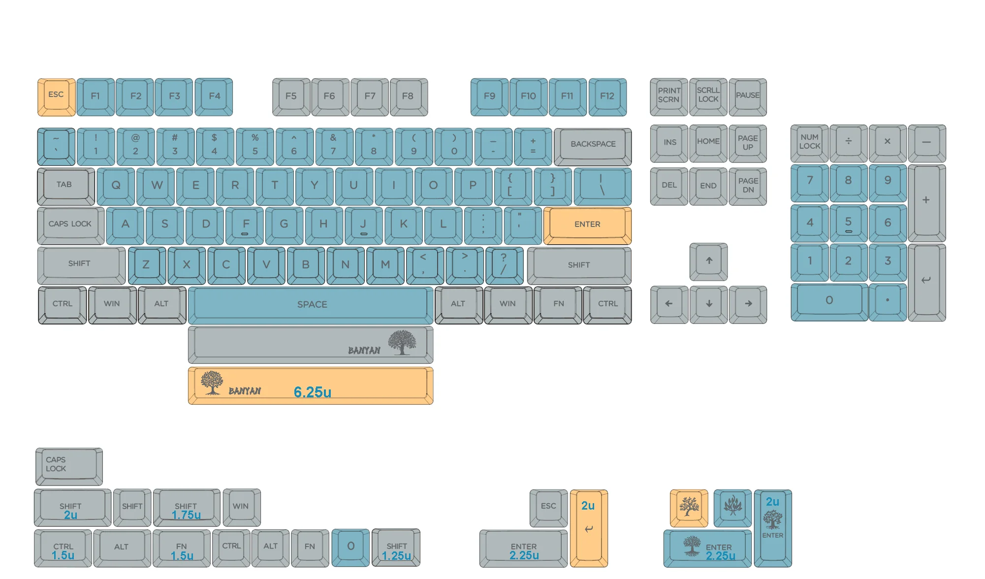 Este juego de teclas tiene un perfil ZDA con forma de bola, que es más bajo que SA, más alto que XDA.