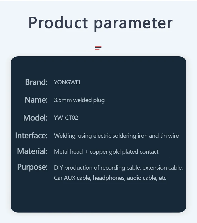 Propósito: Producción DlY de cable de grabación, cable de extensión, cable AUX para automóvil, auriculares, cable de audio, etc.