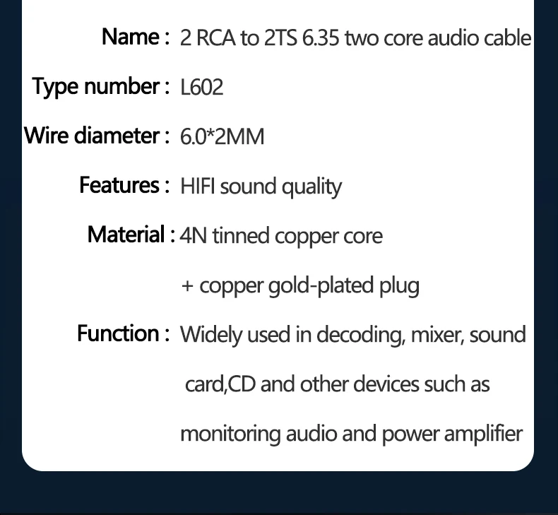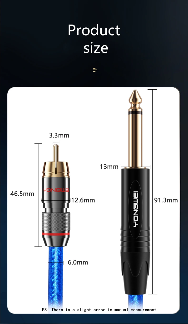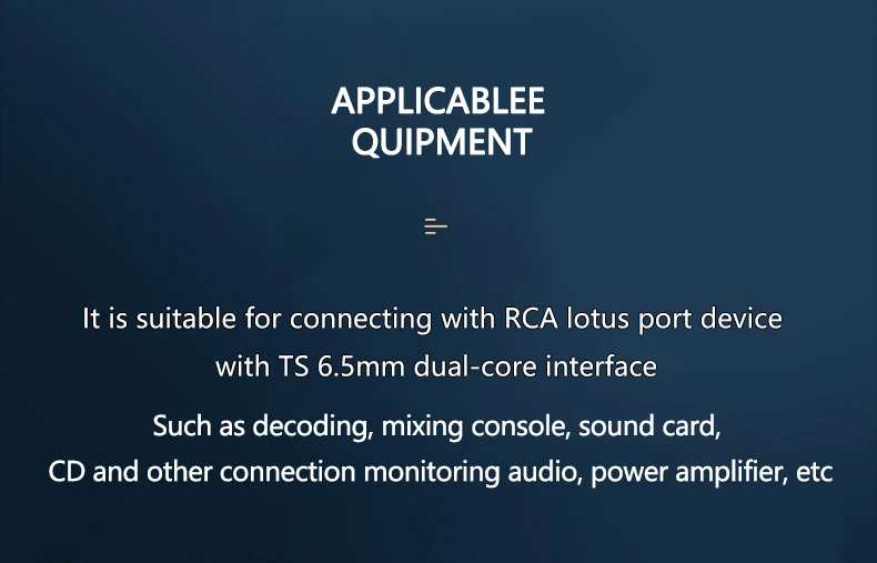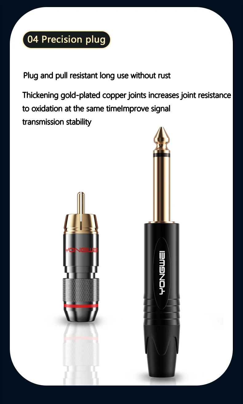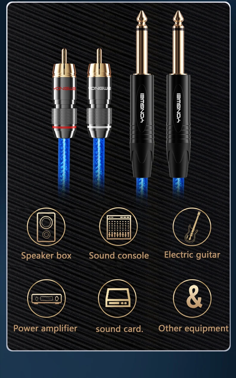 Función: Es adecuado para conectar equipos de puerto RCA Lotus con interfaz central de 6,5 mm, como decodificación, consola de mezclas, tarjeta de sonido, CD, etc., para conectar audio de monitoreo, amplificador de potencia, etc.