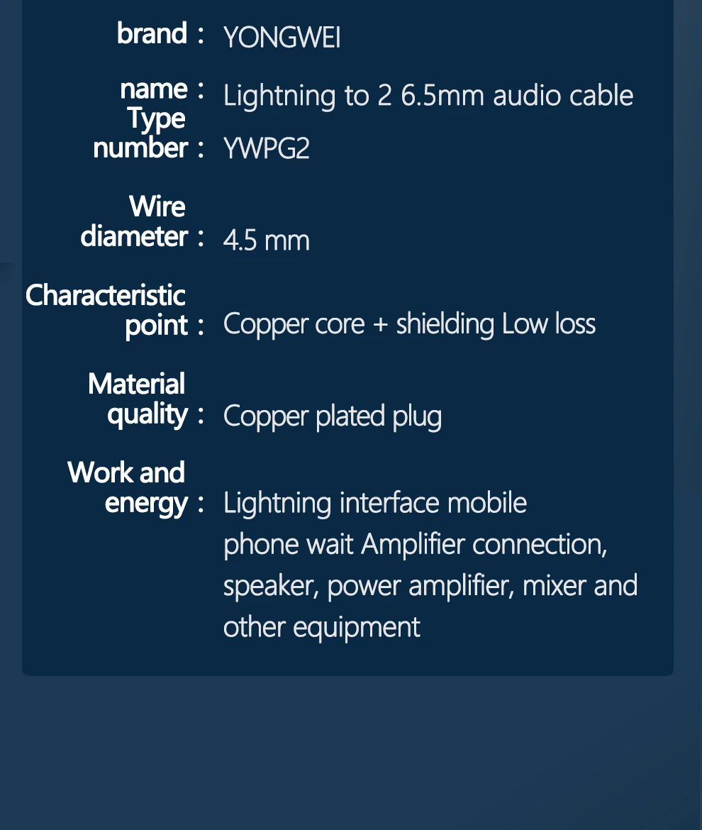 Nombre: cable de audio Lightning a 2 de 6,5mm