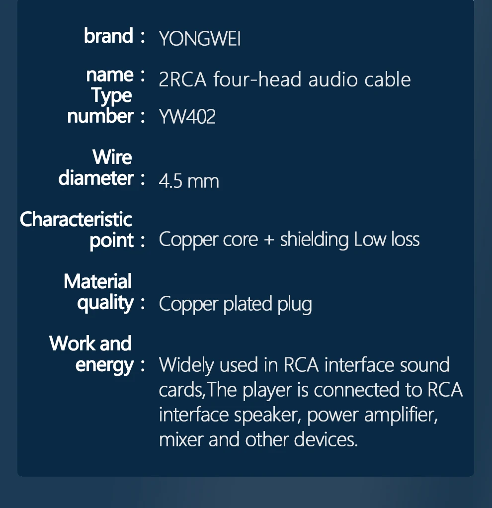 Nombre: cable de audio de cuatro cabezales 2RCA