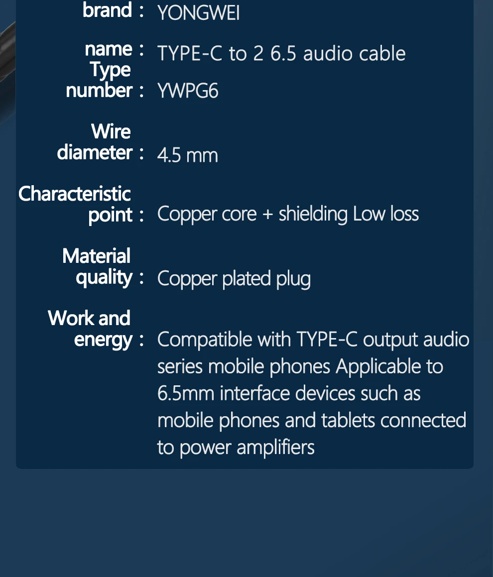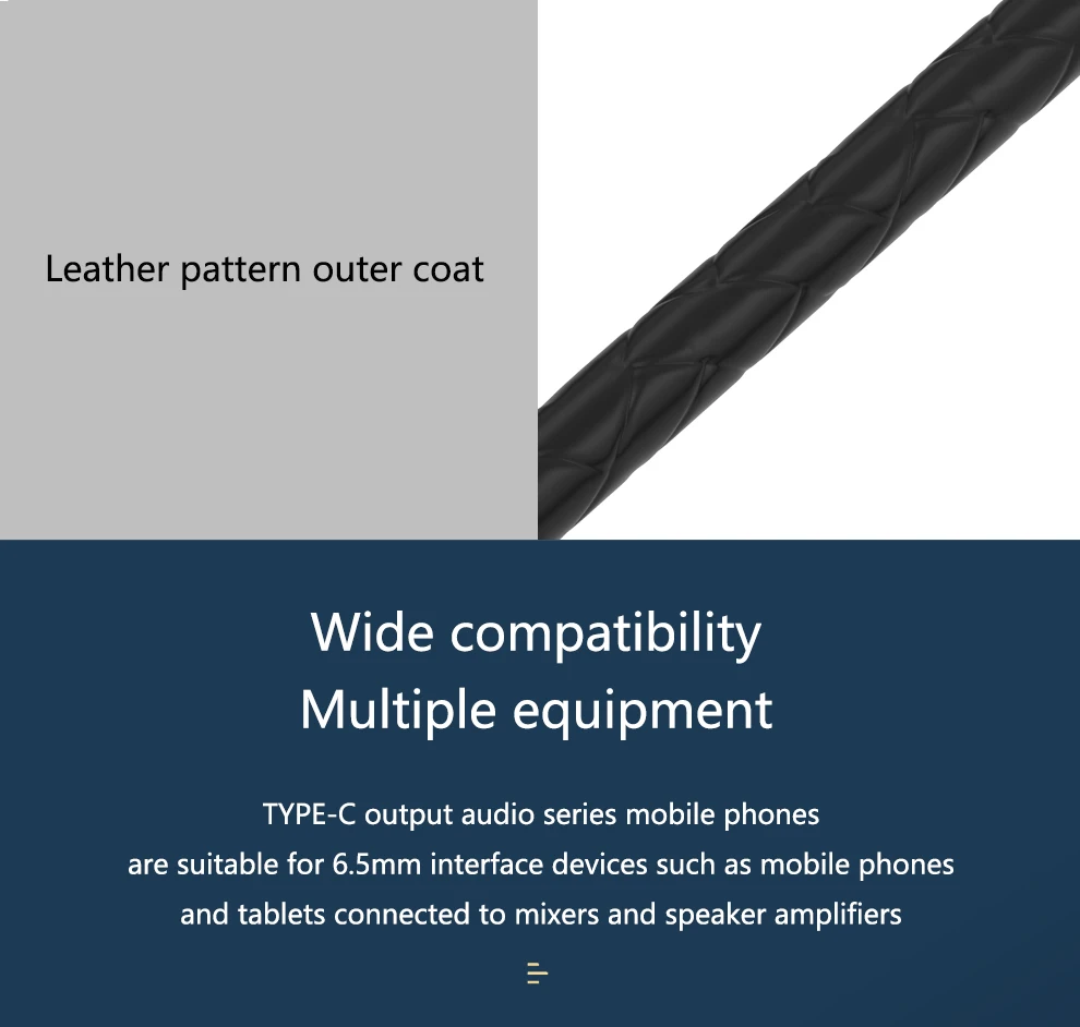 Trabajo y energía: Compatible con teléfonos móviles de series de energía de audio con salida TYPE-C Aplicable a dispositivos de interfaz de 6,5 mm como teléfonos móviles y tabletas conectados a amplificadores de potencia