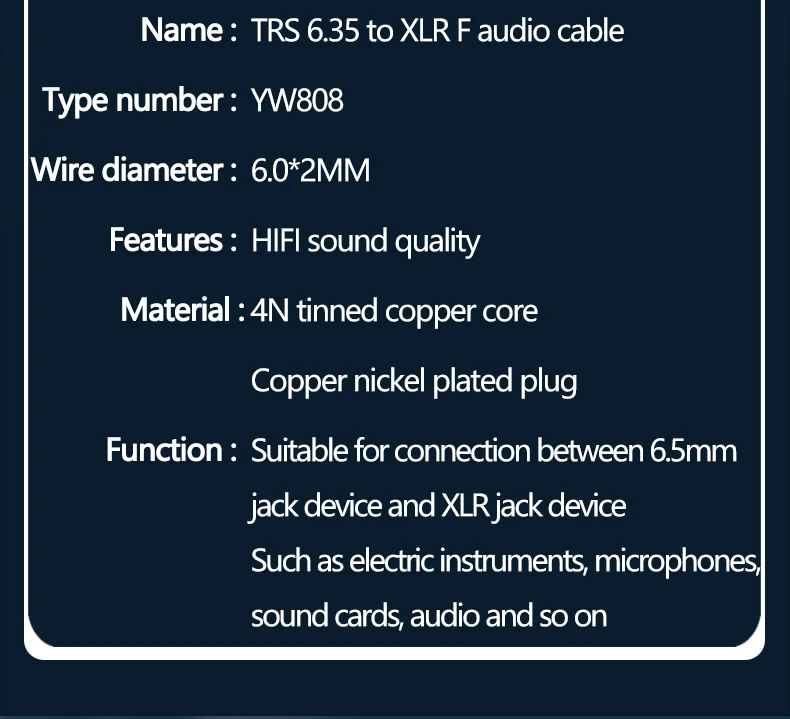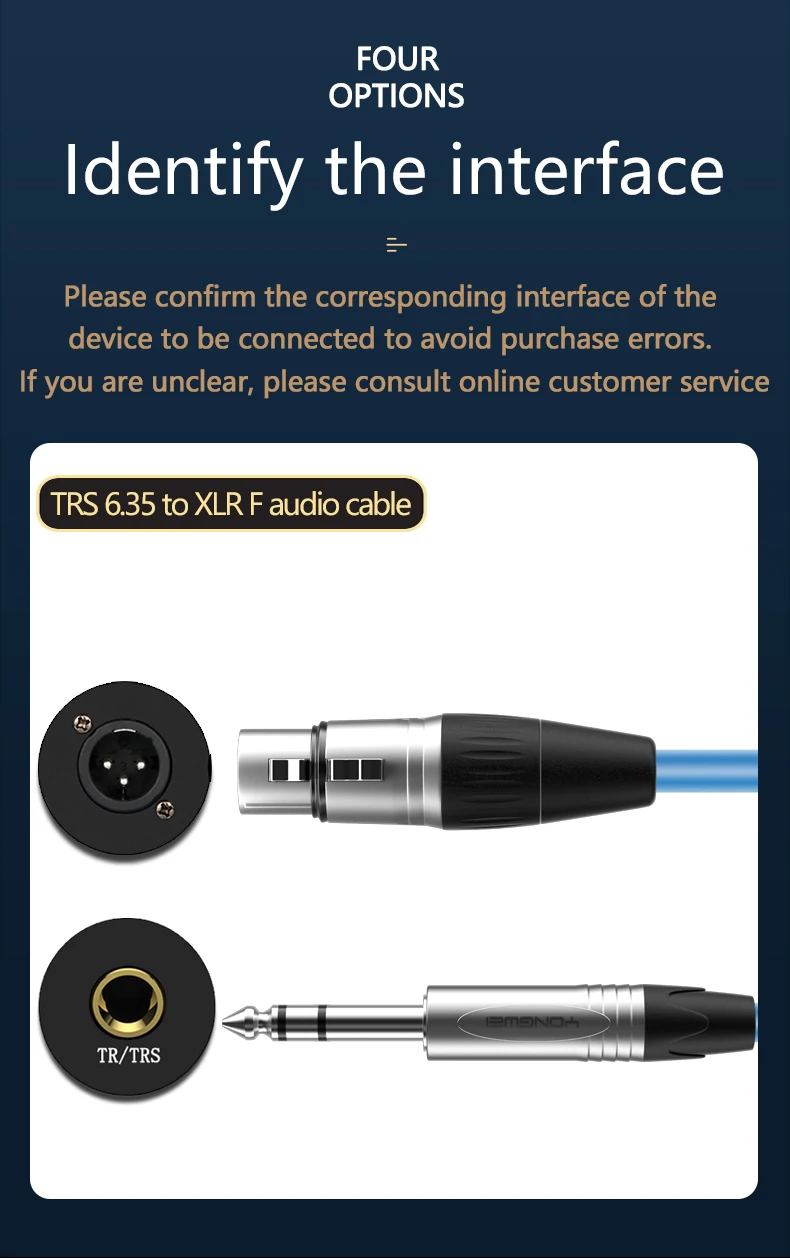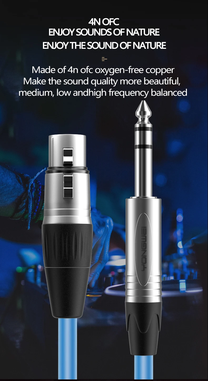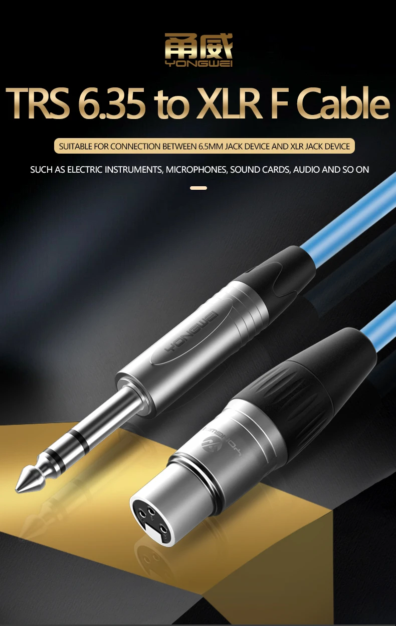 Comprar YONGWEI-TRS auxiliar de 6,35mm,Cable de micrófono XLR de 3 pines, conector de 6,35mm, macho a XLR hembra para amplificador