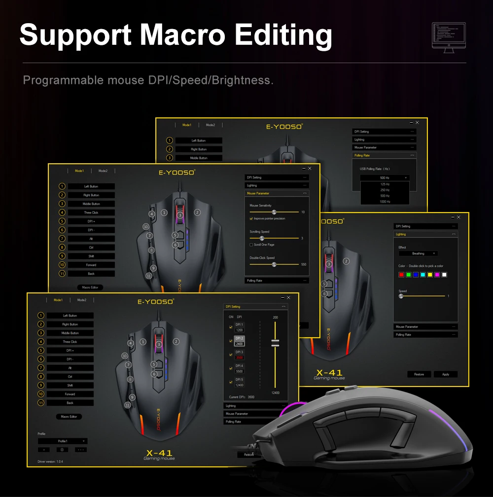 • Resolución de 12400 DPI :La ratón E-yooso X-41 ofrece una resolución de alta precisión de 12400 DPI, permitiendo un control preciso y rápido en juegos.