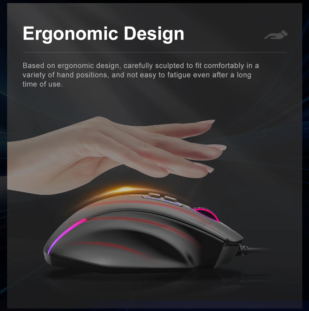 Acme DPI ajustable a 12400-equipado con 5 niveles de DPI a bordo (1000/2400/3500/5500/12400), puede colocar con precisión el movimiento del ratón. Cada uno de los niveles de 5 DPI se puede personalizar fácilmente a través del software, lo que le permite cambiar rápidamente a la configuración de DPI.