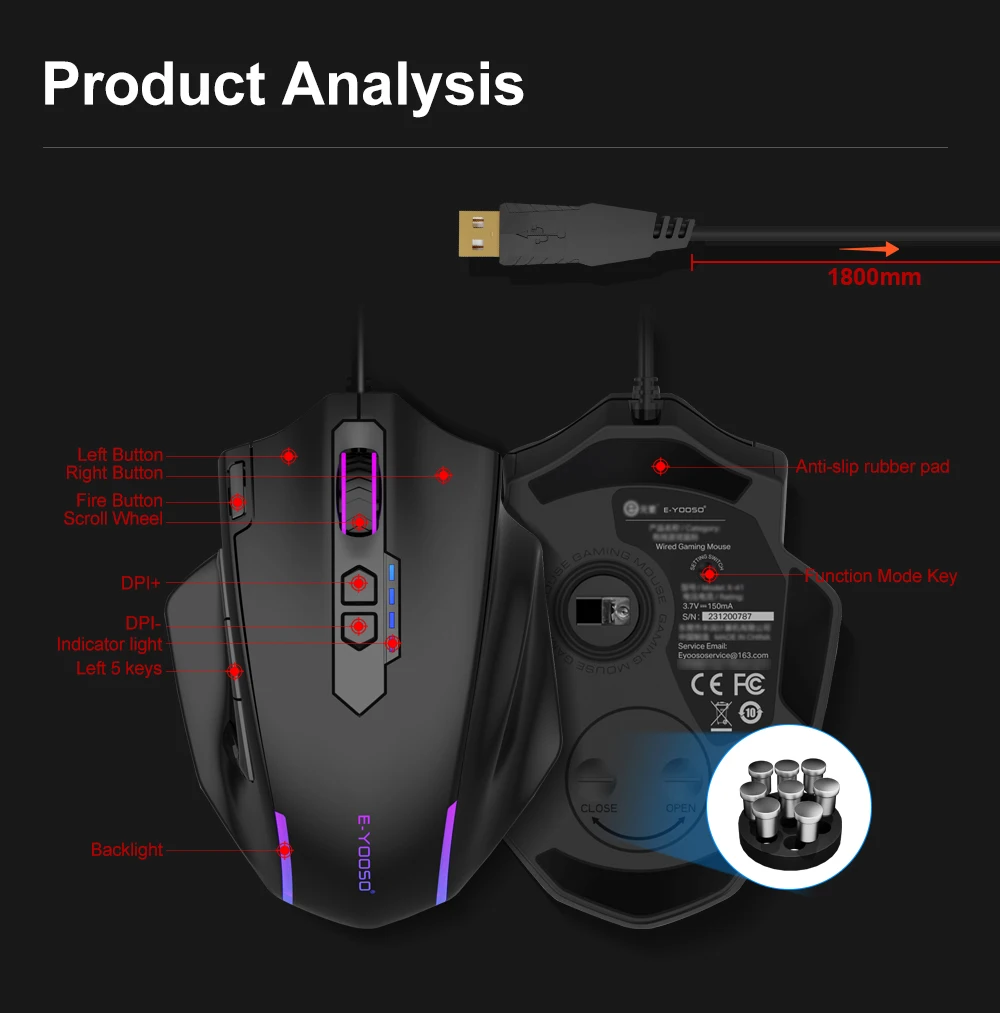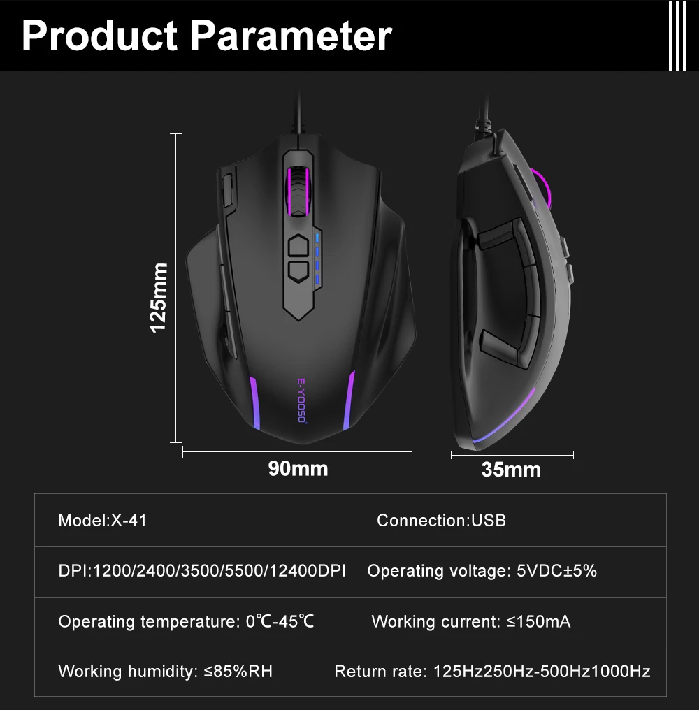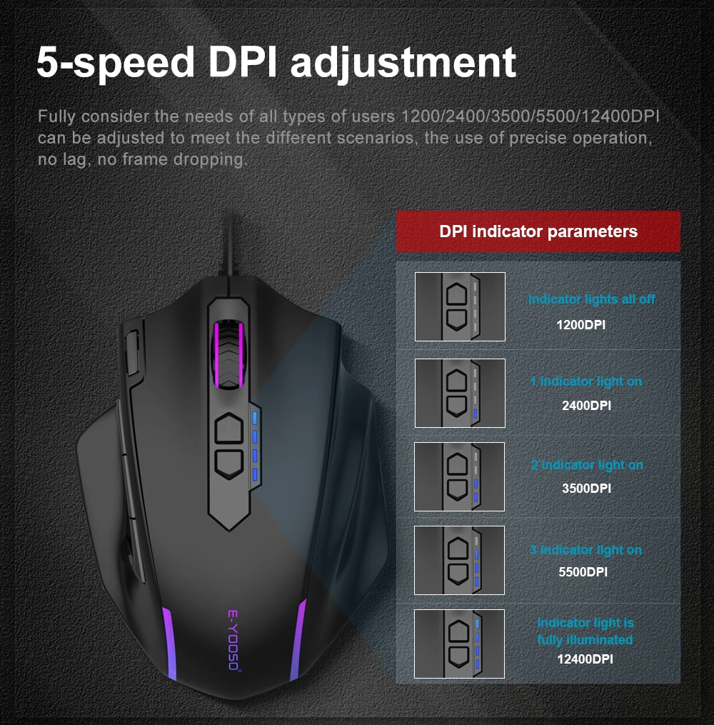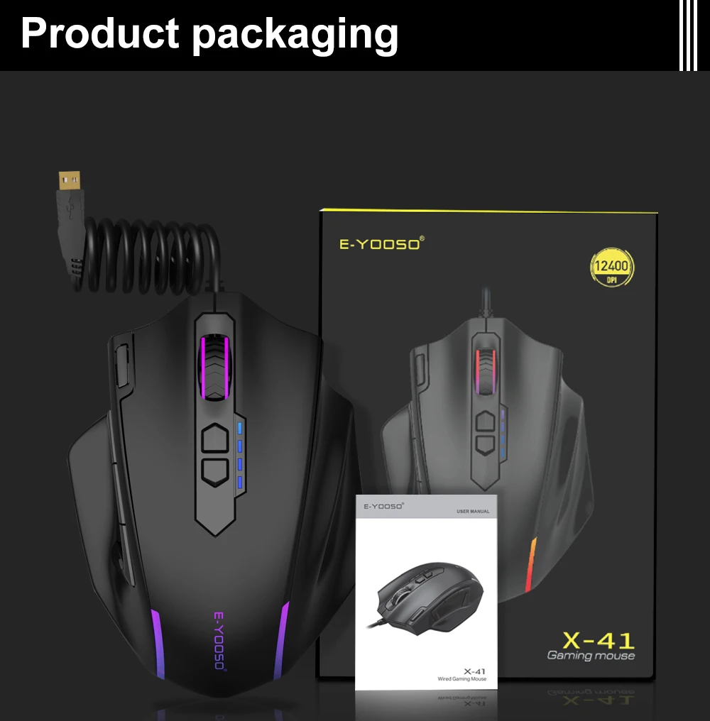 • Resolución de 12400 DPI :La ratón E-yooso X-41 ofrece una resolución de alta precisión de 12400 DPI, permitiendo un control preciso y rápido en juegos.