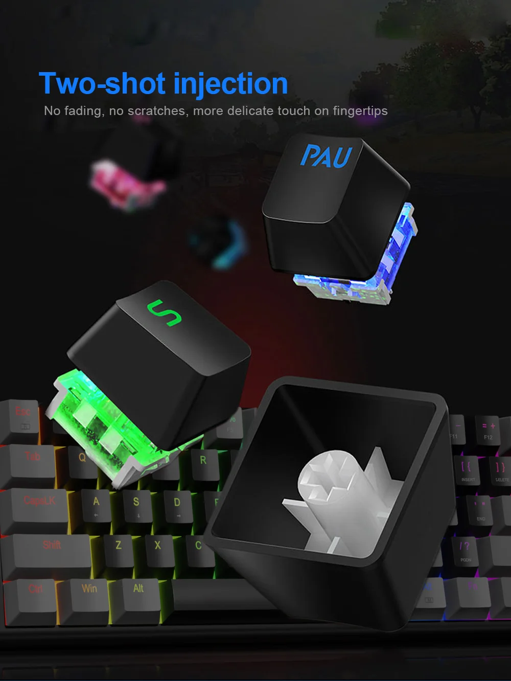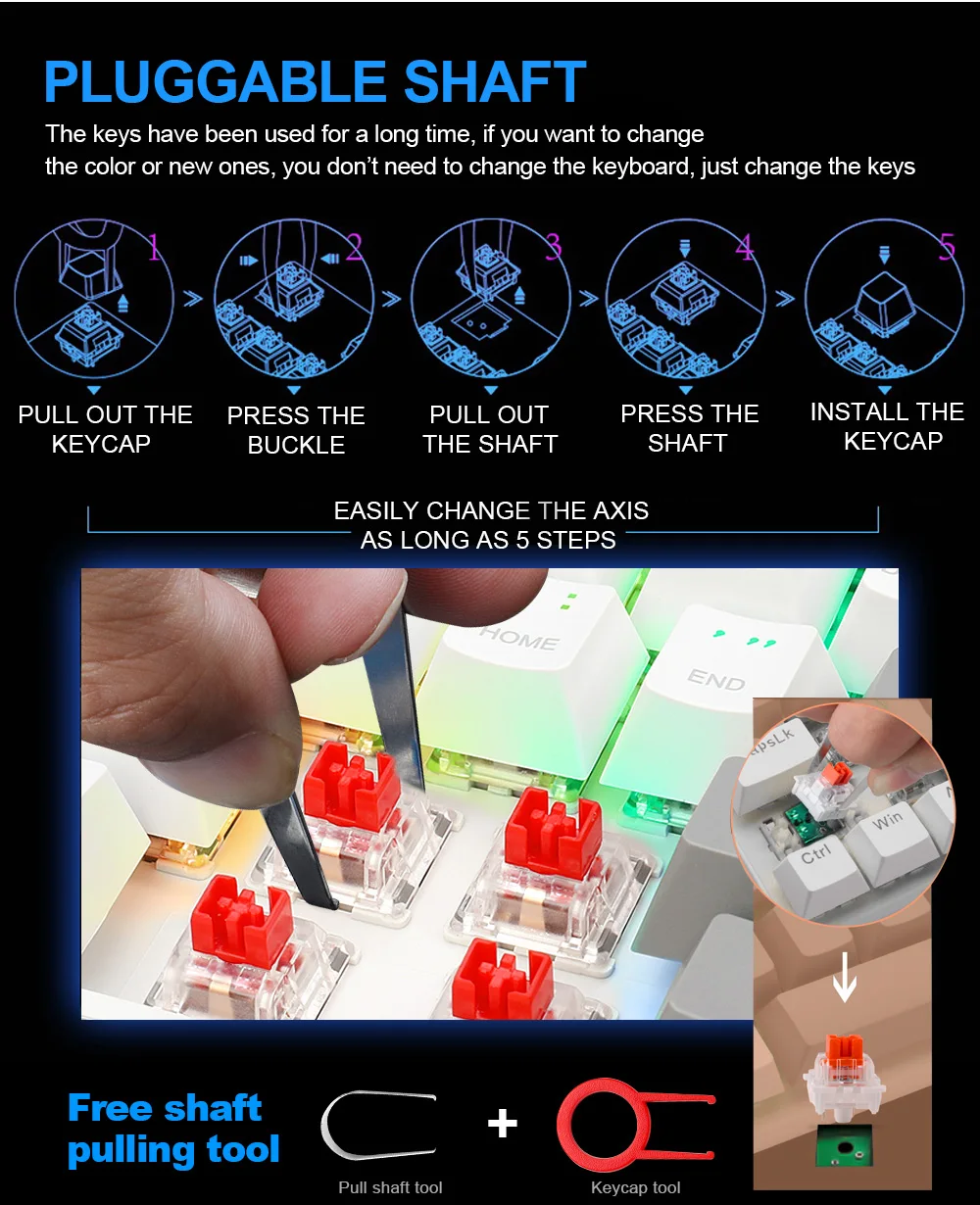 [Tecla de doble inyección intercambiable en caliente]: la PCB de intercambio en caliente le permite reemplazar los interruptores de 3 pines libremente sin problemas de soldadura, puede disfrutar de la diversión de hacer diferentes interruptores en un teclado, creando su propio teclado mecánico único.La tecla de doble inyección proporciona una retroiluminación uniforme y cristalina y nunca se desvanece.