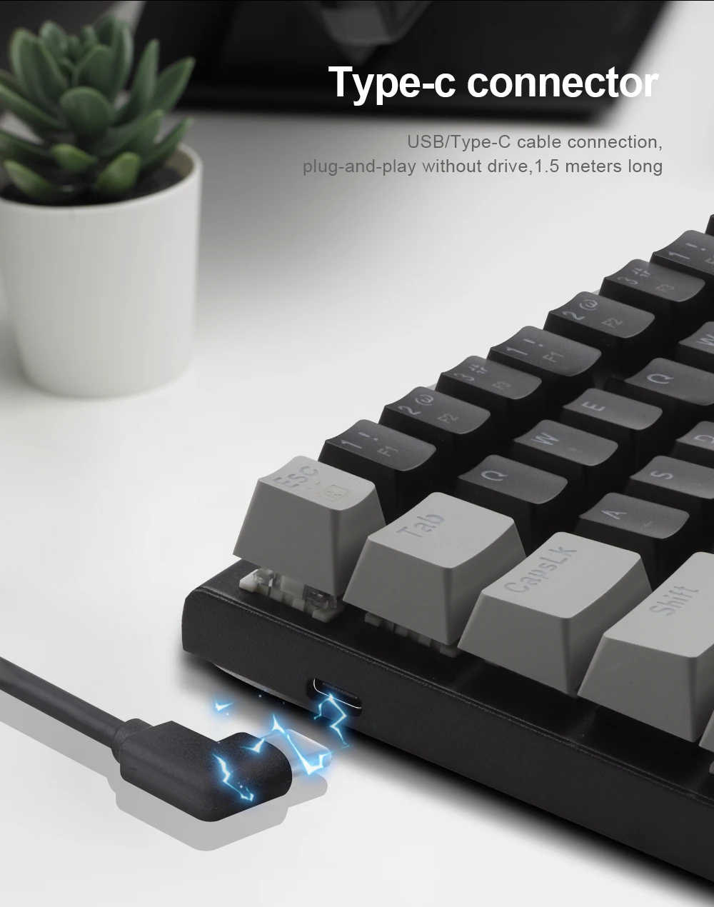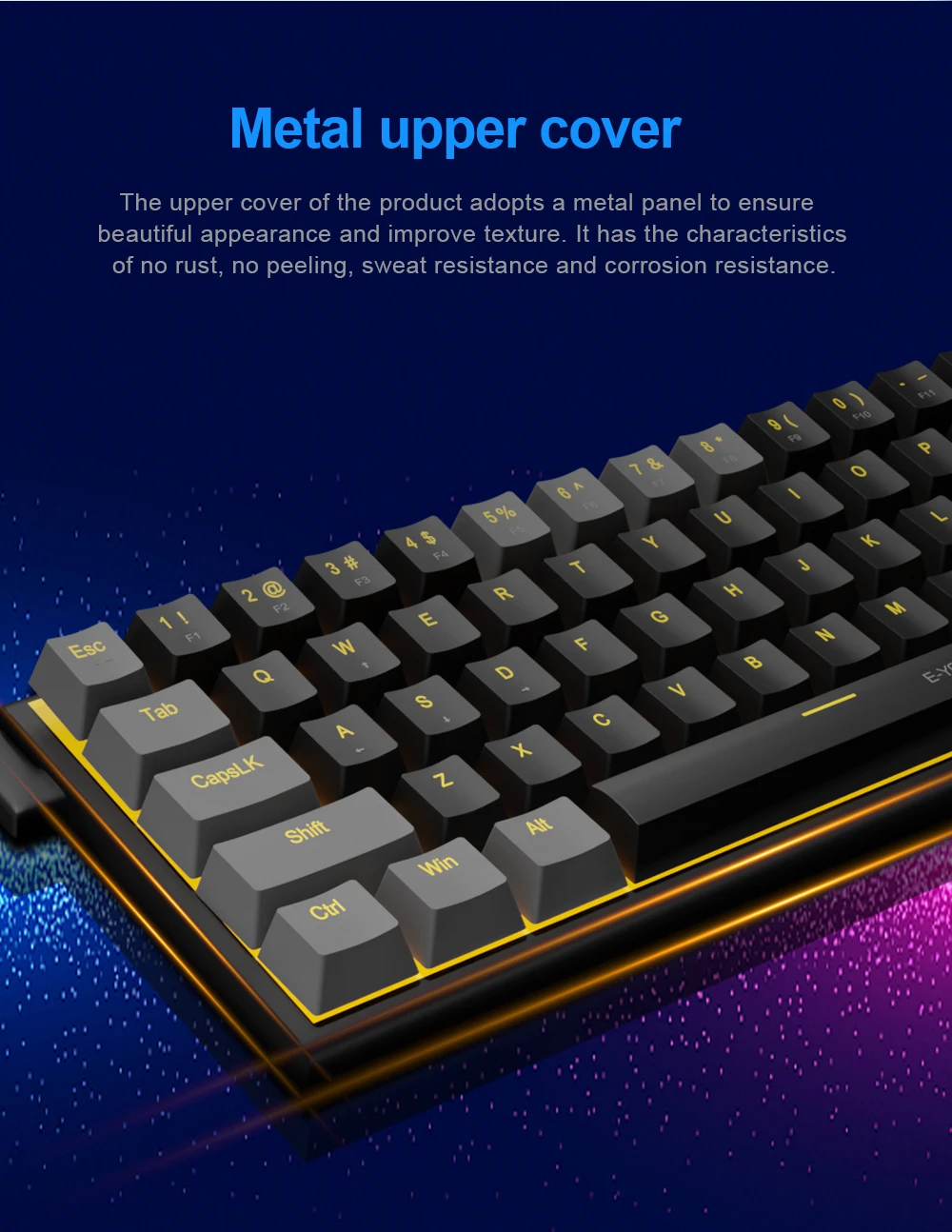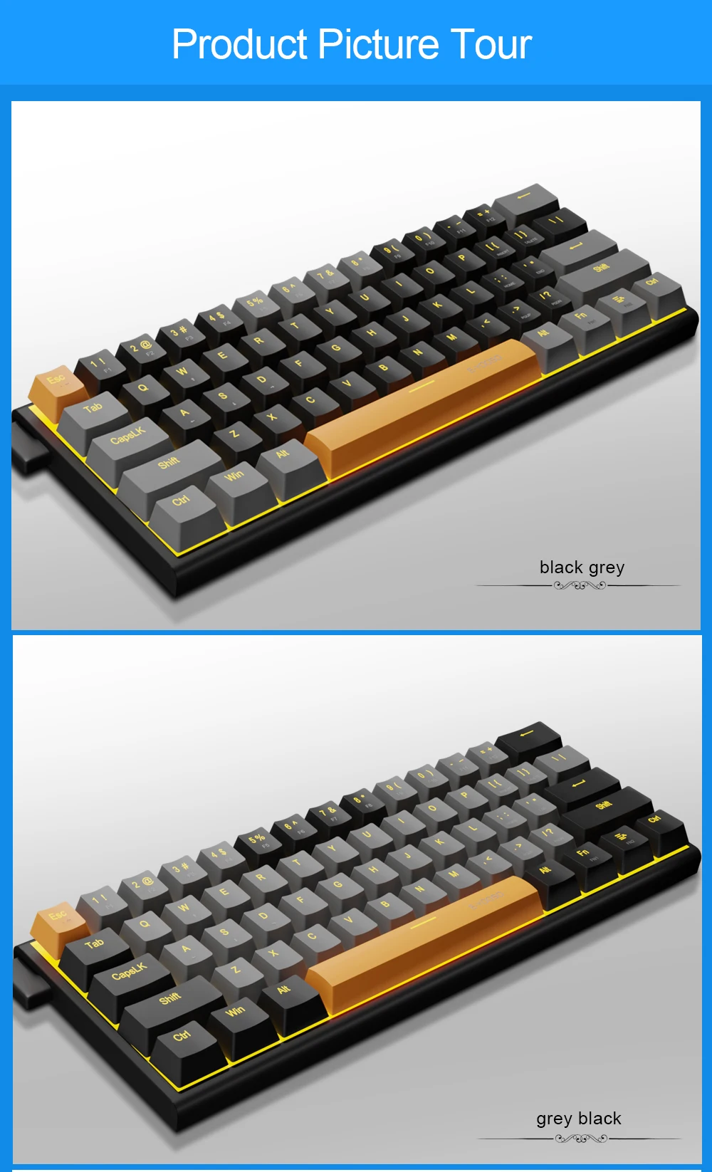 【Teclado mecánico portátil del 60%】: Este es un mini teclado mecánico compacto de 61 teclas con panel de metal y línea de conexión extraíble tipo c, es bueno para todos los entornos, juegos de viajes de negocios, uso doméstico en la oficina, sin número de teclado, más práctico para jugadores y Typista, dé más espacio a su escritorio.