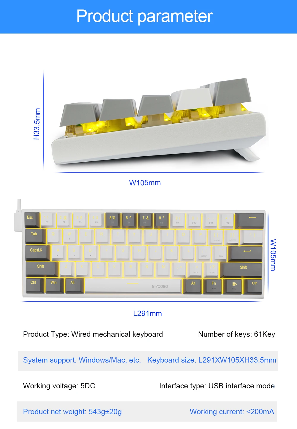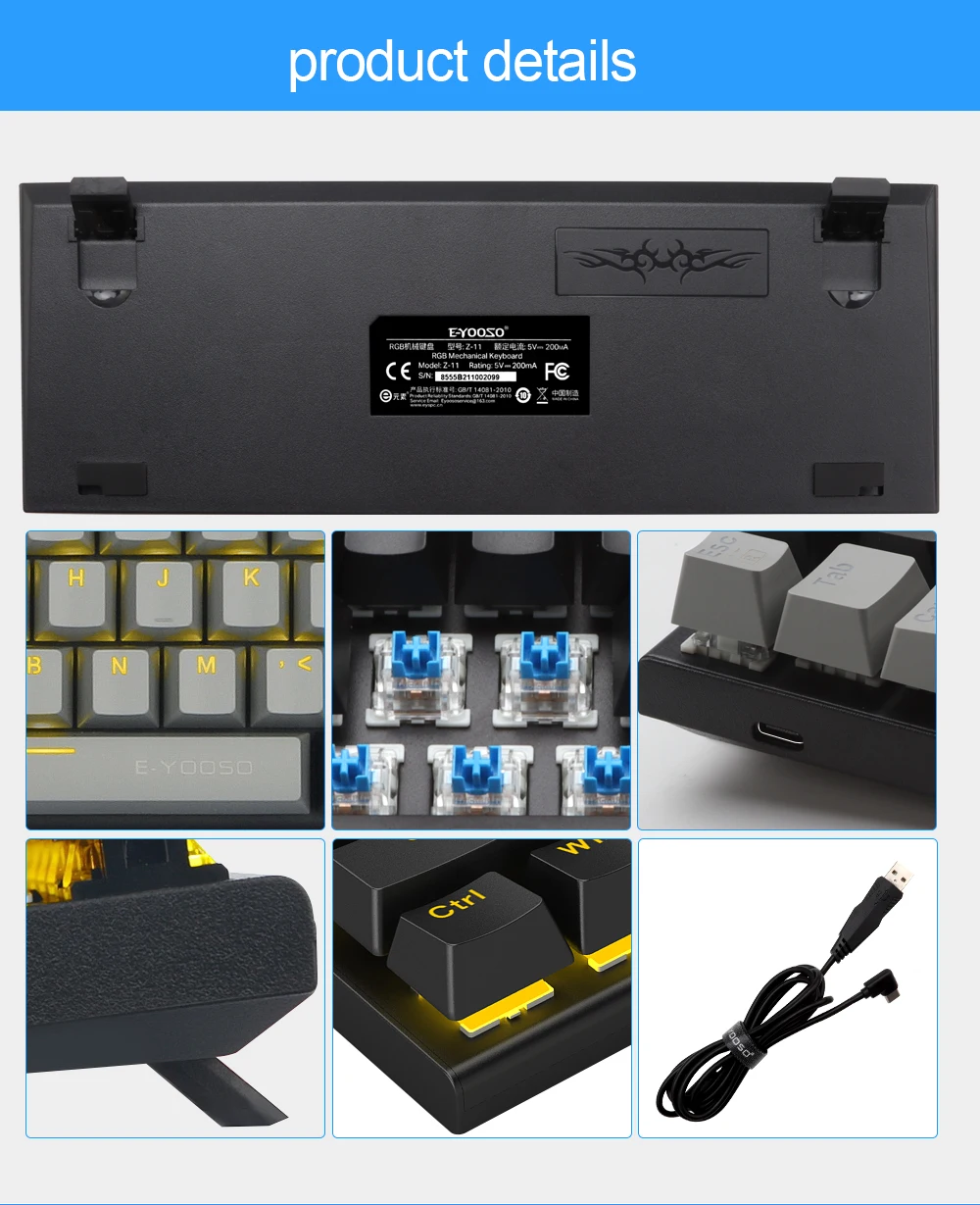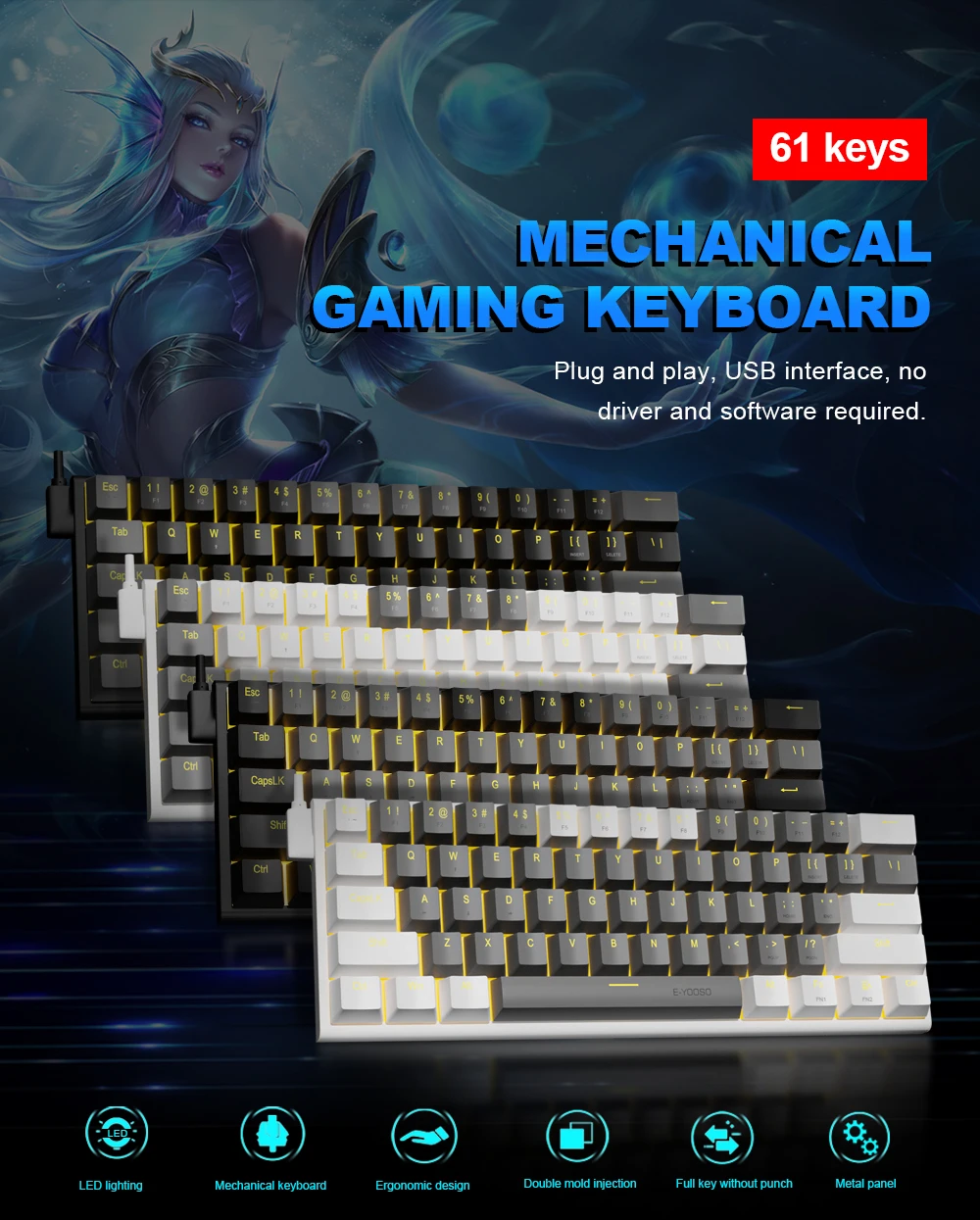 【Amplia compatibilidad】: el teclado mecánico E-YOOSO 60% es plug and play, no necesita ninguna unidad, es compatible con Windows 2000/XP/Vista/7/8/10, Mac OS (Nota: los atajos multimedia no están disponibles en Mac Sistema OS). También es compatible con PS5/PS4, funciona bien con computadoras de escritorio, Chrome-book, PC, computadora portátil, computadora y más.