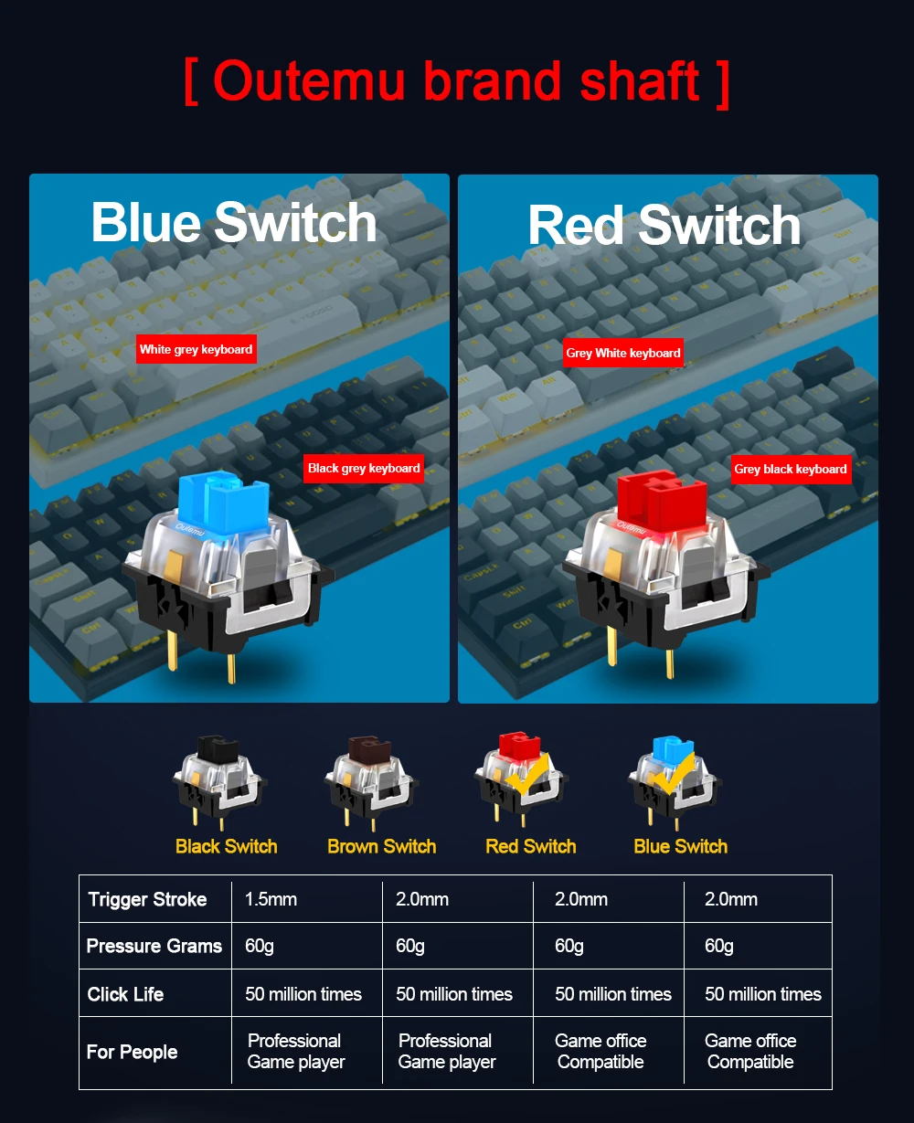 【Excelente interruptor rojo】: el teclado mecánico E-OOSO utiliza interruptores rojos, vida útil de 50 millones de pulsaciones de teclas, 2.Distancia de 0 mm a la actuación, fuerza de accionamiento de 45 g, más fácil de activar, sonido de clic silencioso y acción rápida con mínima resistencia, sin sentido de párrafo, le proporciona un entorno de escritura silencioso, el interruptor rojo es la mejor opción para usar en la oficina.