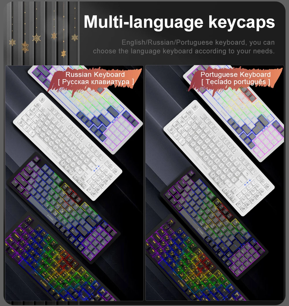 ❤Teclado multilingüe con el teclado Inglés, ruso de la disposición, donde está compatible portugués con español