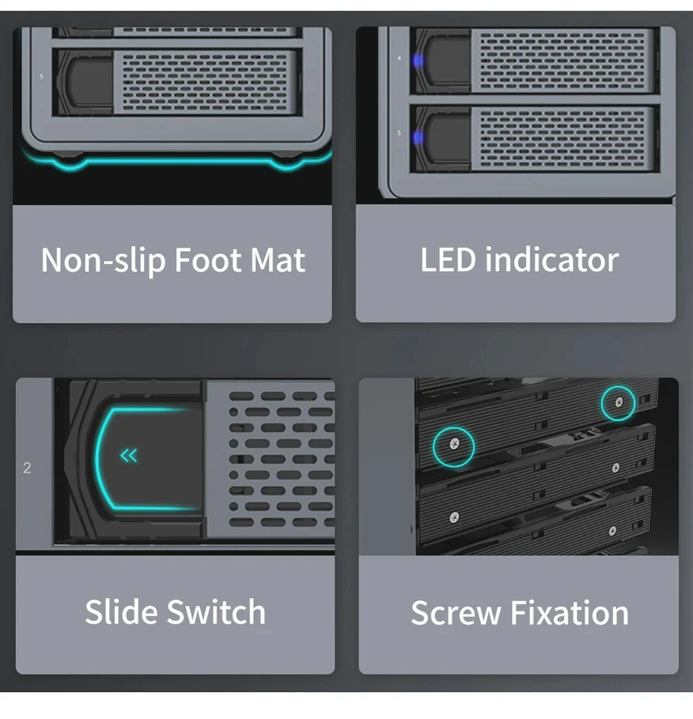 Comprar Yottamaster 10Gbps 5 Bay USB C HDD gabinete tipo C HDD externo compatible con 2,5 "/3,5" SATA HDD/SSD capacidad de hasta 5X18TB