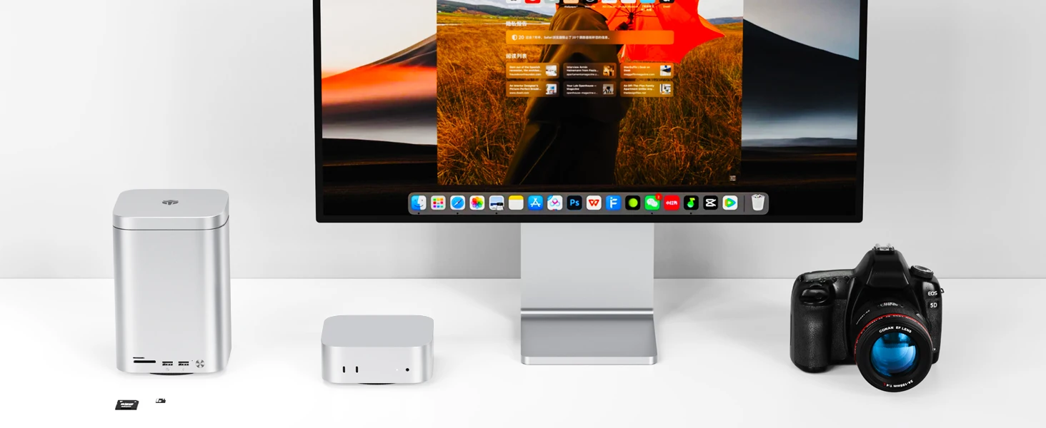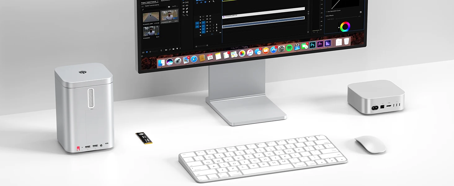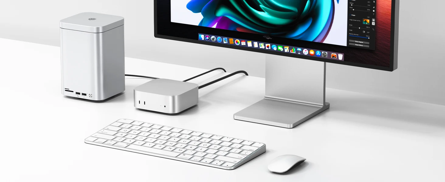 Simplifique su flujo de trabajo y amplíe sus horizontes. El Yottamaster Mini Tower Dock es el concentrador de expansión de almacenamiento definitivo para su Mac Mini M4 y más.