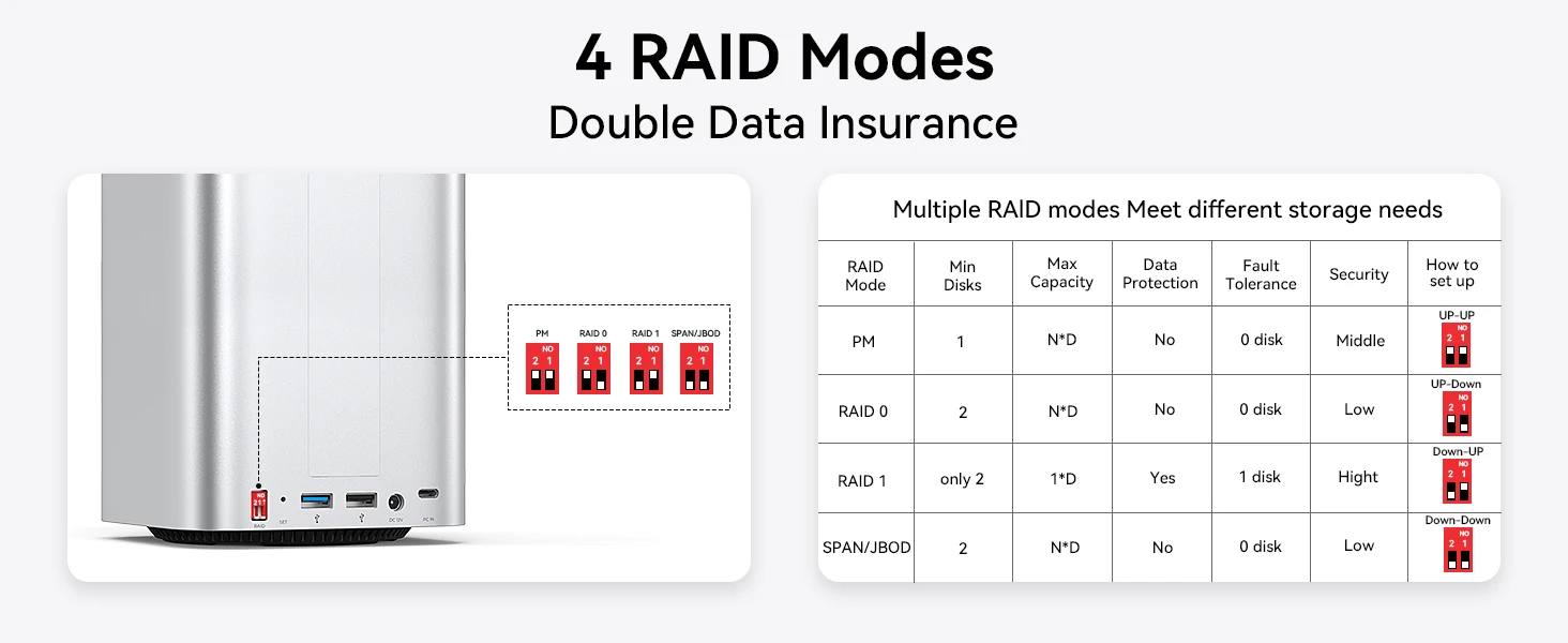 * RAID 1: Reflejo de datos en dos unidades para una copia de seguridad instantánea y protección de datos.