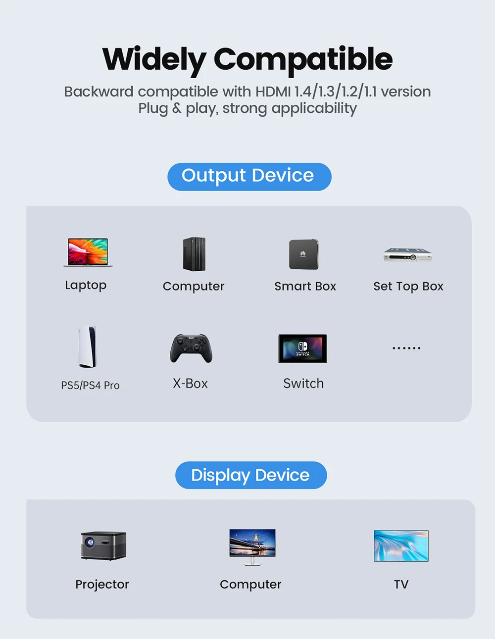 Compatible con HDMI 1,4/1,3/1,2/11 Versión Plug & Play, fuerte Aplicabilidad