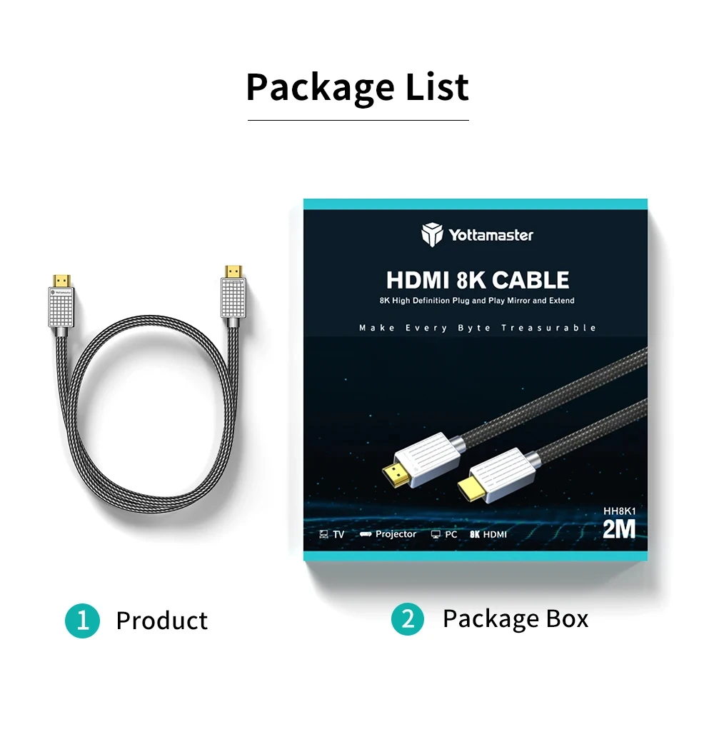 Comprar Yottamaster-Cable de vídeo 3D, nivel de ingeniería, 8K @ 60Hz, HDMI 2,1, 48gbps, Compatible con 4K240Hz, para Notebook, PC a TV, Cable de proyector