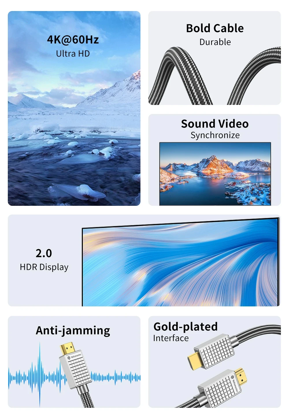 Soporta 4k @ 60Hz resolución ultra clara, 18Gbps