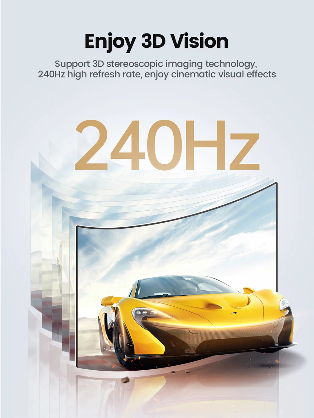 Admite tecnología de imagen estereoscópica 3D. Alta frecuencia de actualización de 240Hz, disfruta de efectos visuales cinematográficos