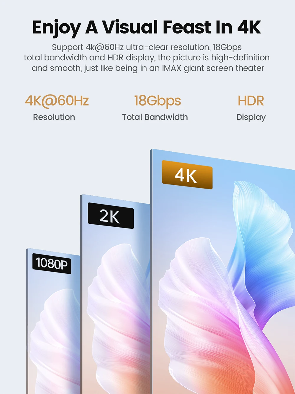 Soporta 4k @ 60Hz resolución ultra clara, 18Gbps