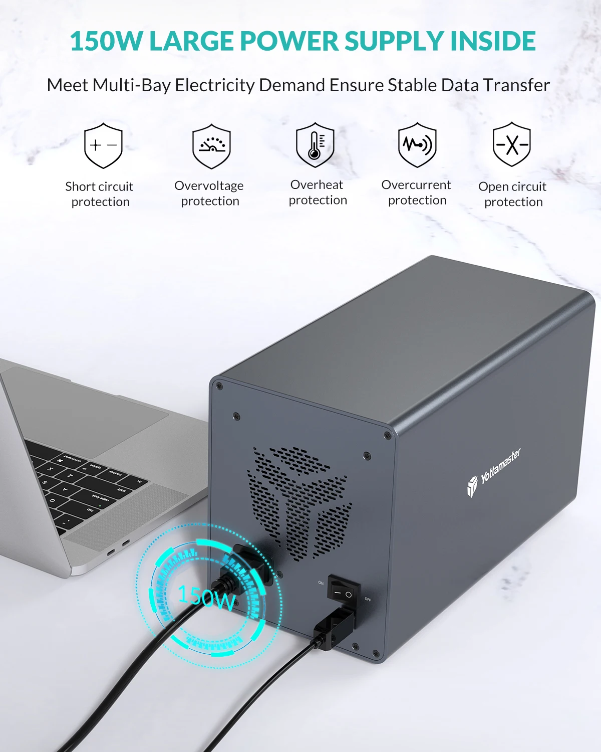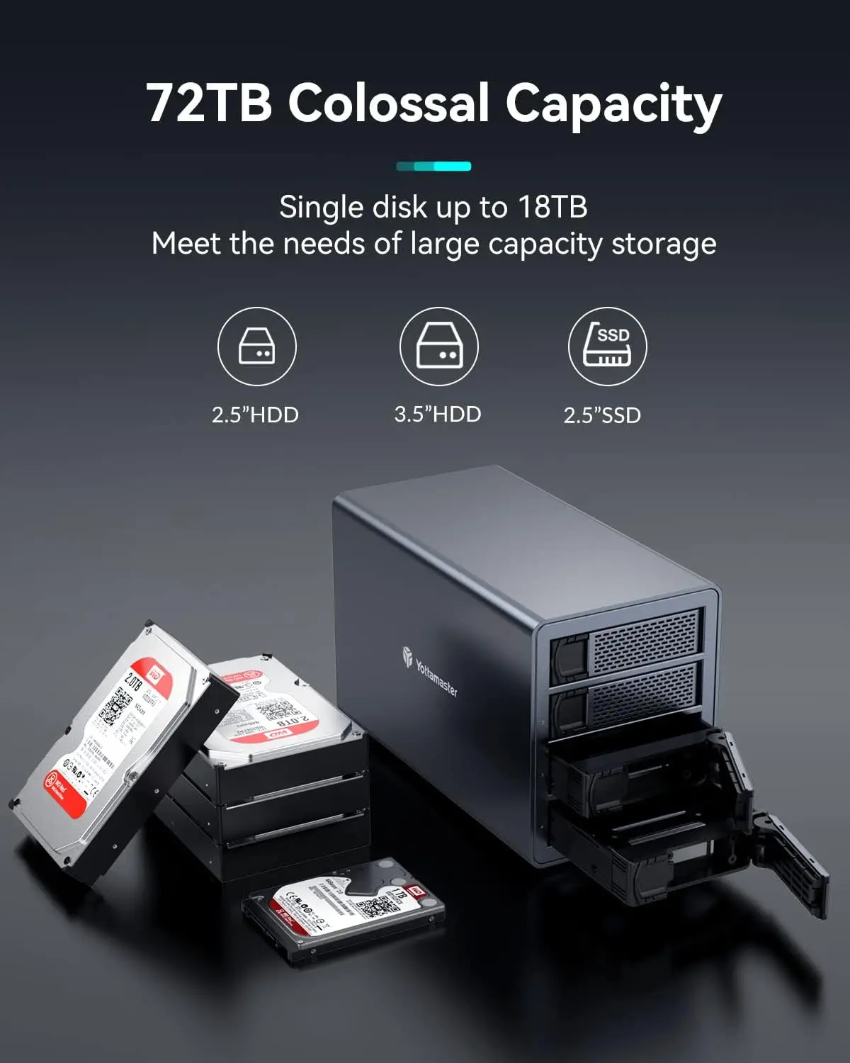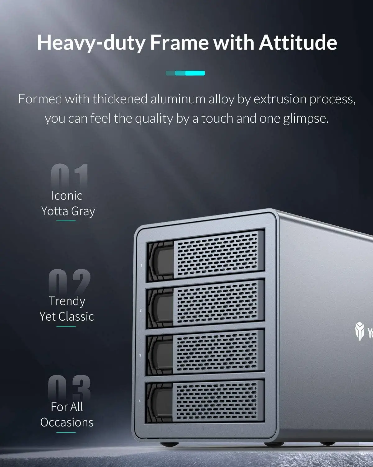 La carcasa HDD Yottamaster de 4 bahías tiene cuatro bandejas extraíbles para SSD de 2,5 "y HDD de 3,5 pulgadas. Ajuste HDD de 3,5 pulgadas al maximizar la capacidad de almacenamiento.