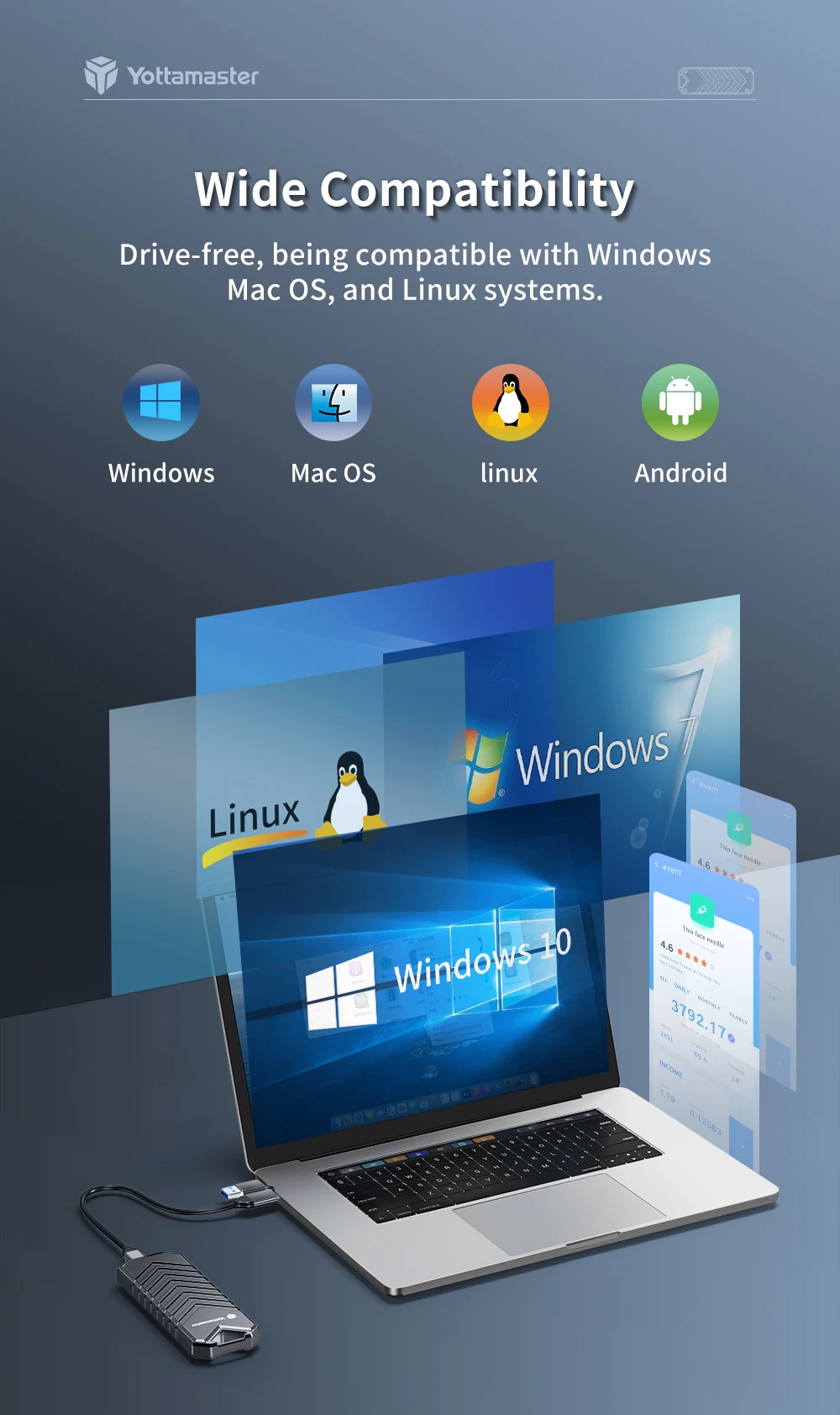 El chip superior admite el protocolo UASP y la función TRIM, lo que brinda una transmisión estable, segura y rápida.