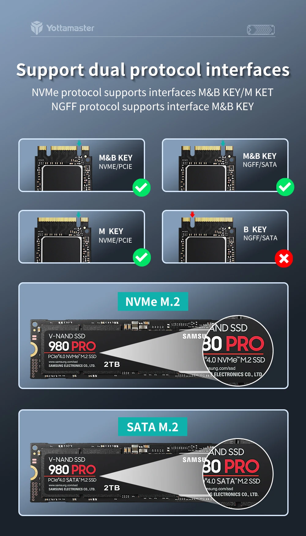 El protocolo NVMe admite interfaces M & B KEY/M KEY
