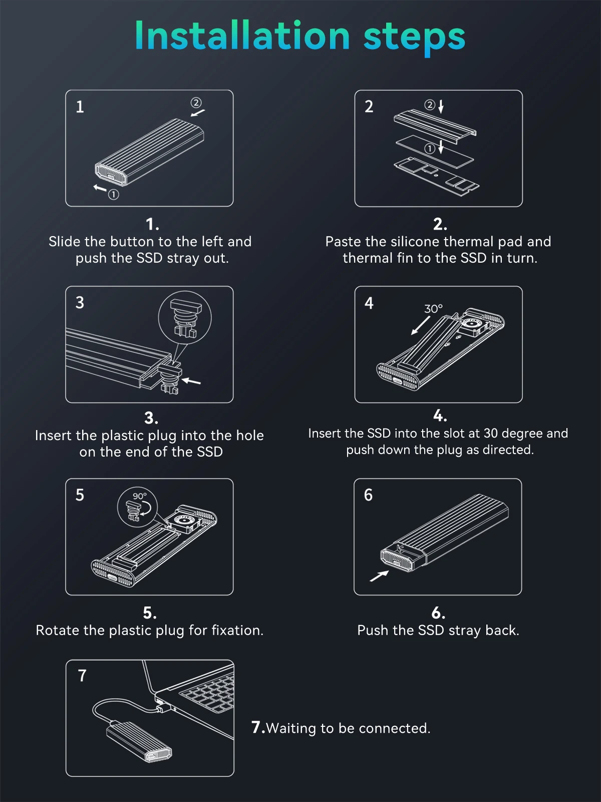 La velocidad de transferencia real depende de la velocidad de SSD, el tipo de Puerto USB, el rendimiento del ordenador, los medios NVMe utilizados, etc.