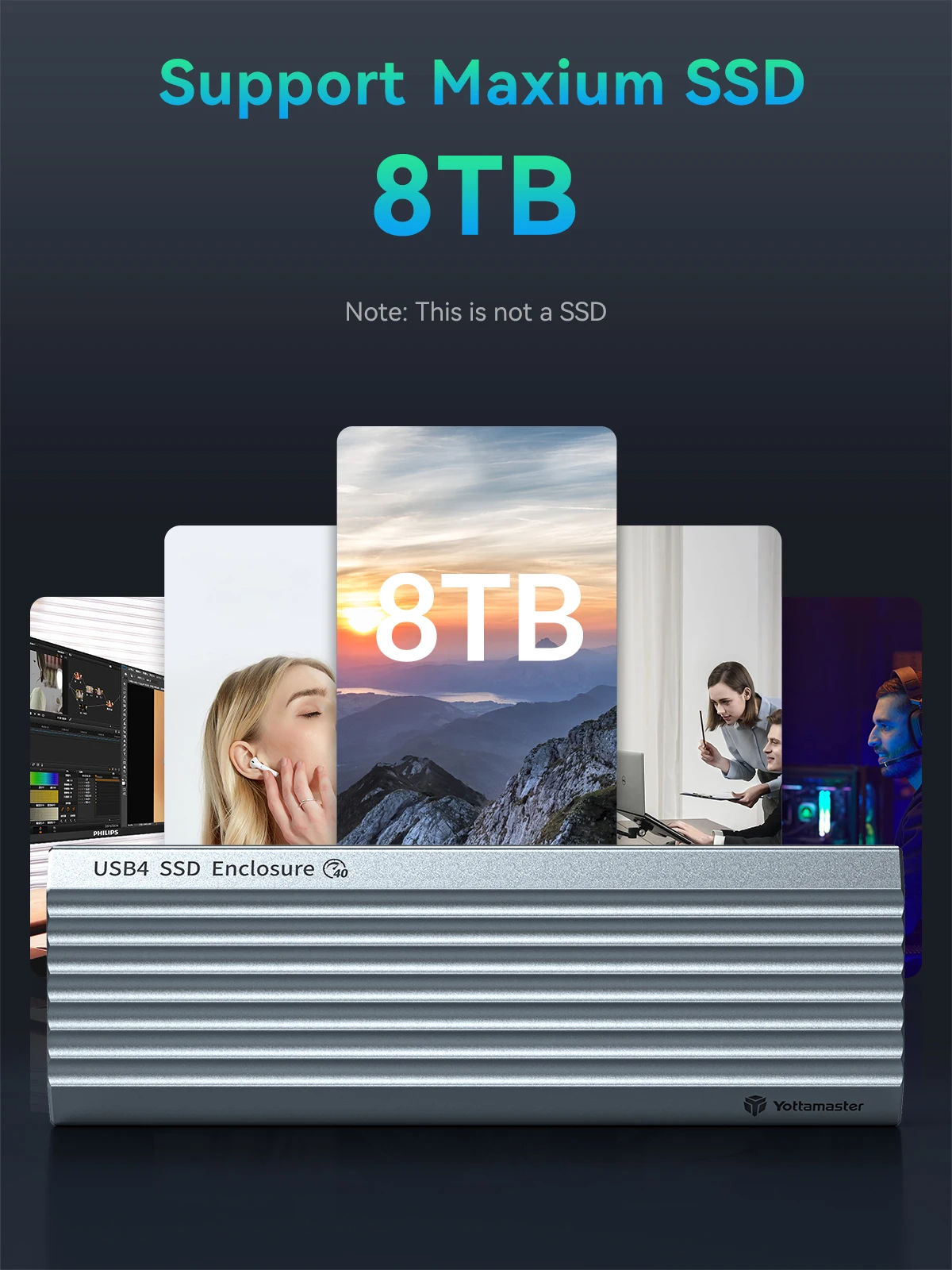 Yottamaster USB4 M.2 SSD carcasa 40Gbps carcasa externa de alta velocidad carcasa de disco de estado Sólido caja de almacenamiento de disco duro para PC portátil