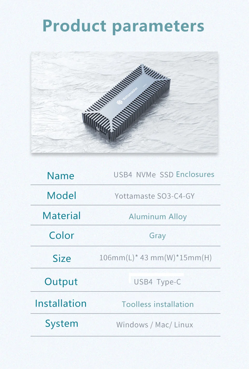 Comprar Yottamaster-carcasa NVMe USB4.0 Thunderbolt 4 M.2, carcasa de 40Gbps para Thunderbolt 3/4/USB3.2 Hasta 2700 MB/s- 2280 NVMe SSD