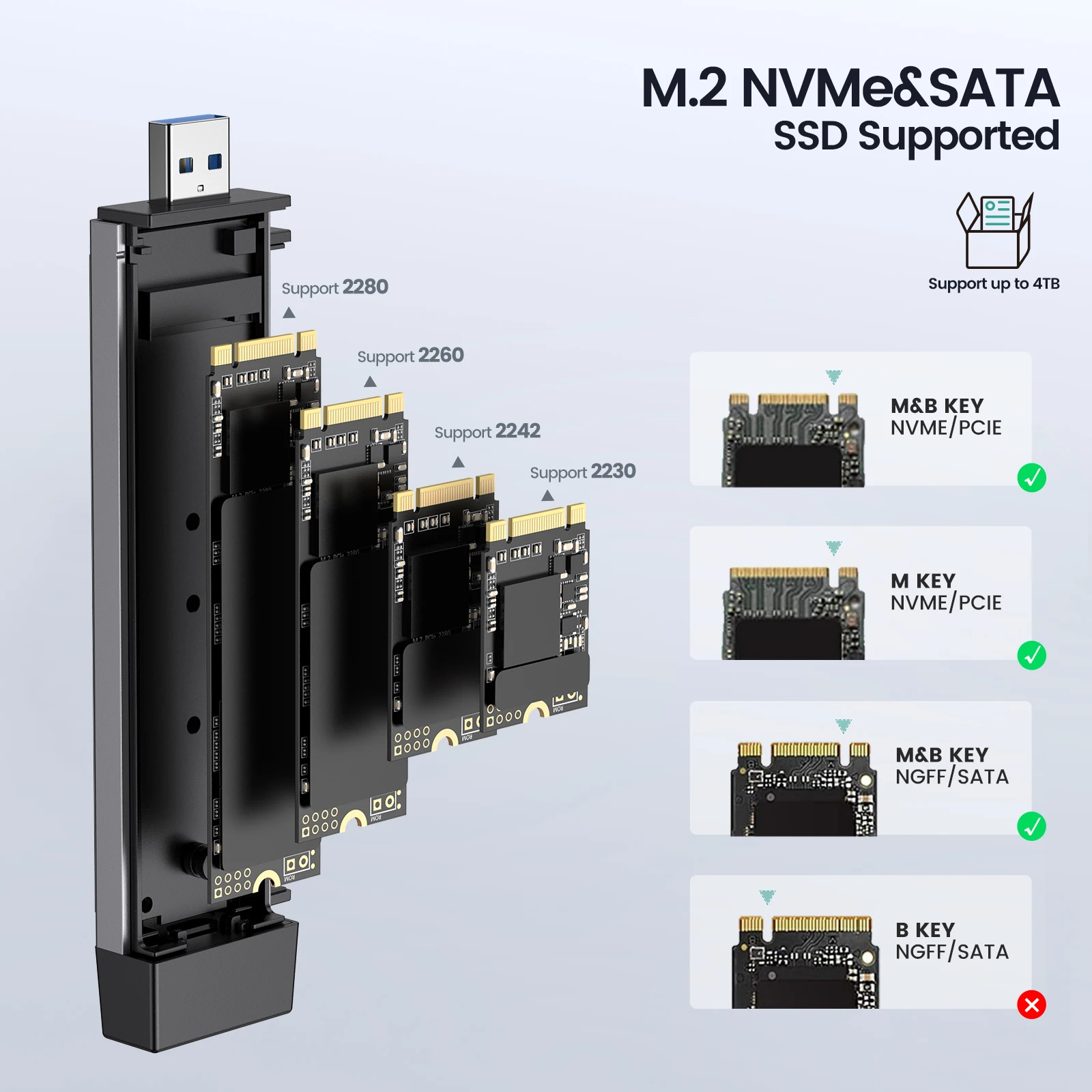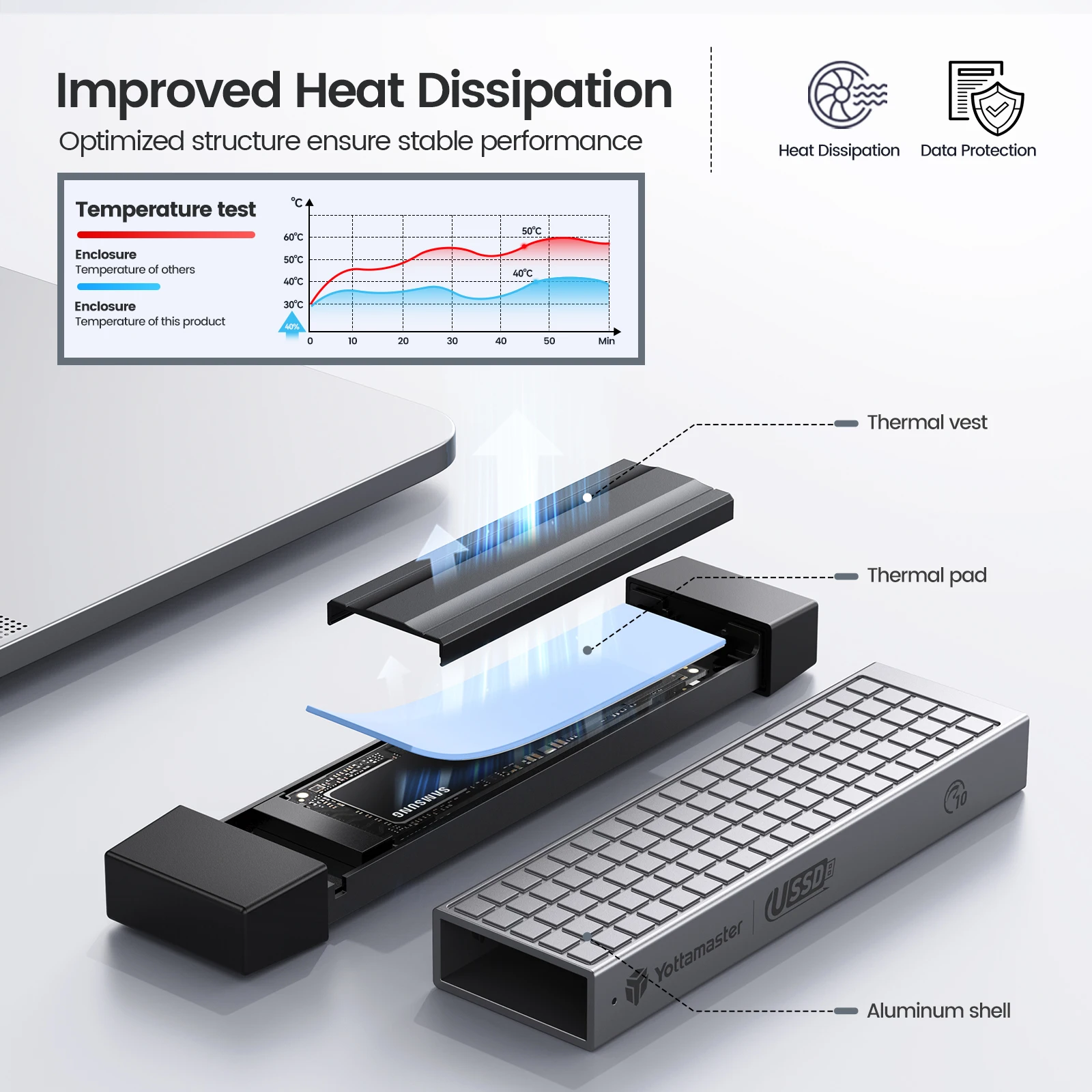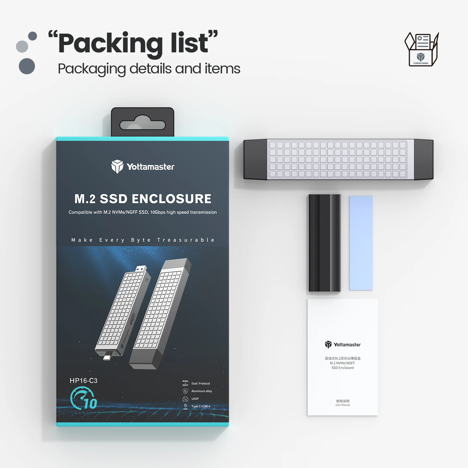 Comprar Yottamaster-carcasa SSD USB 3,1 (Gen2) Tipo C/USB-A, disco U, protocolo Dual M.2 NVMe y SATA, compatible con m-key/B & m-key 4TB