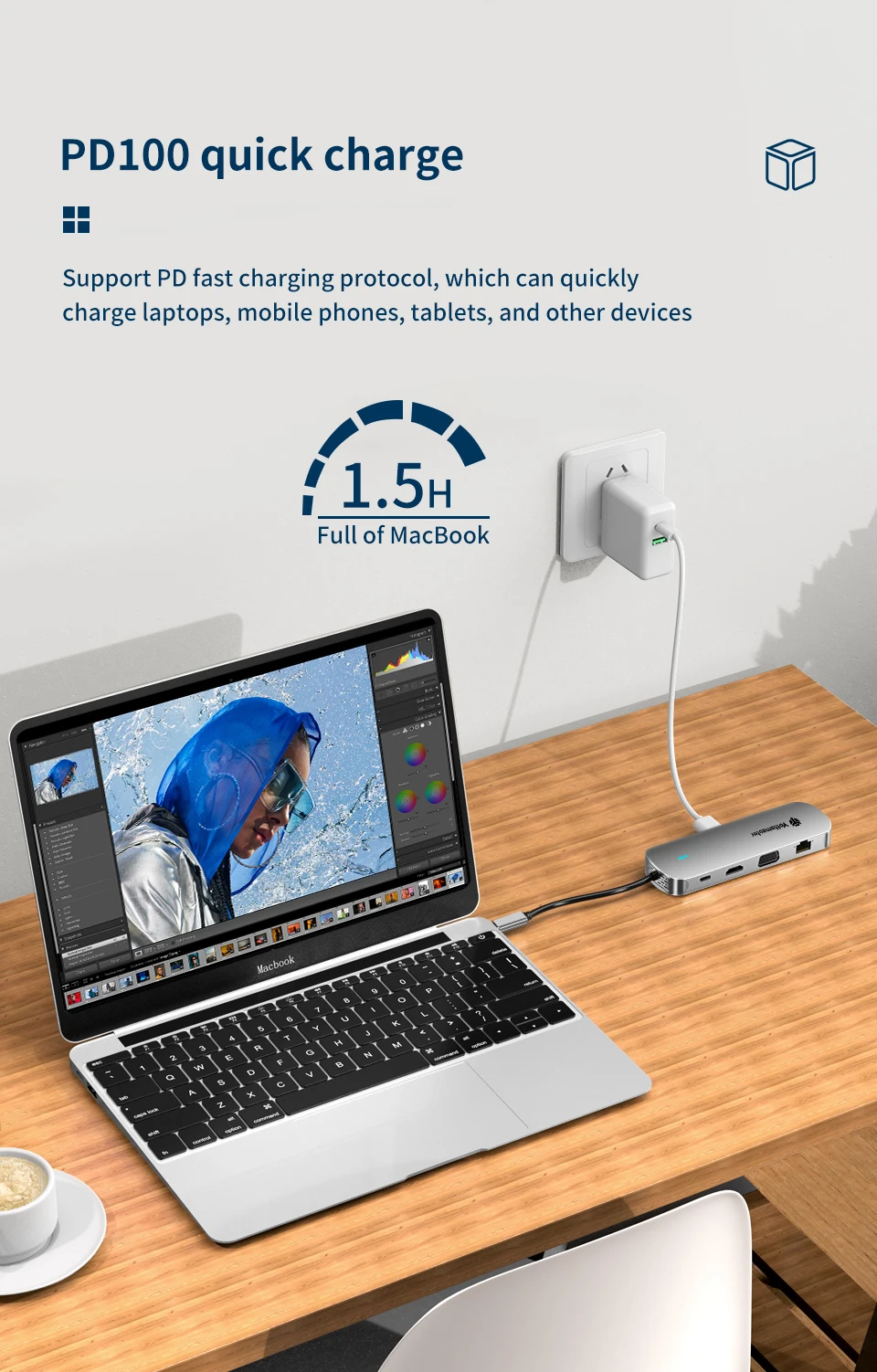 Admite el protocolo de carga rápida PD, que puede cargar rápidamente computadoras portátiles,