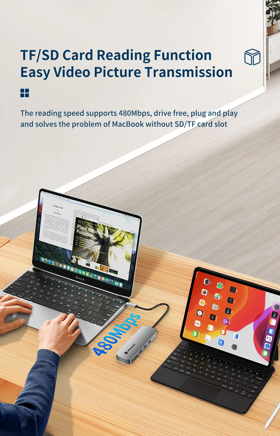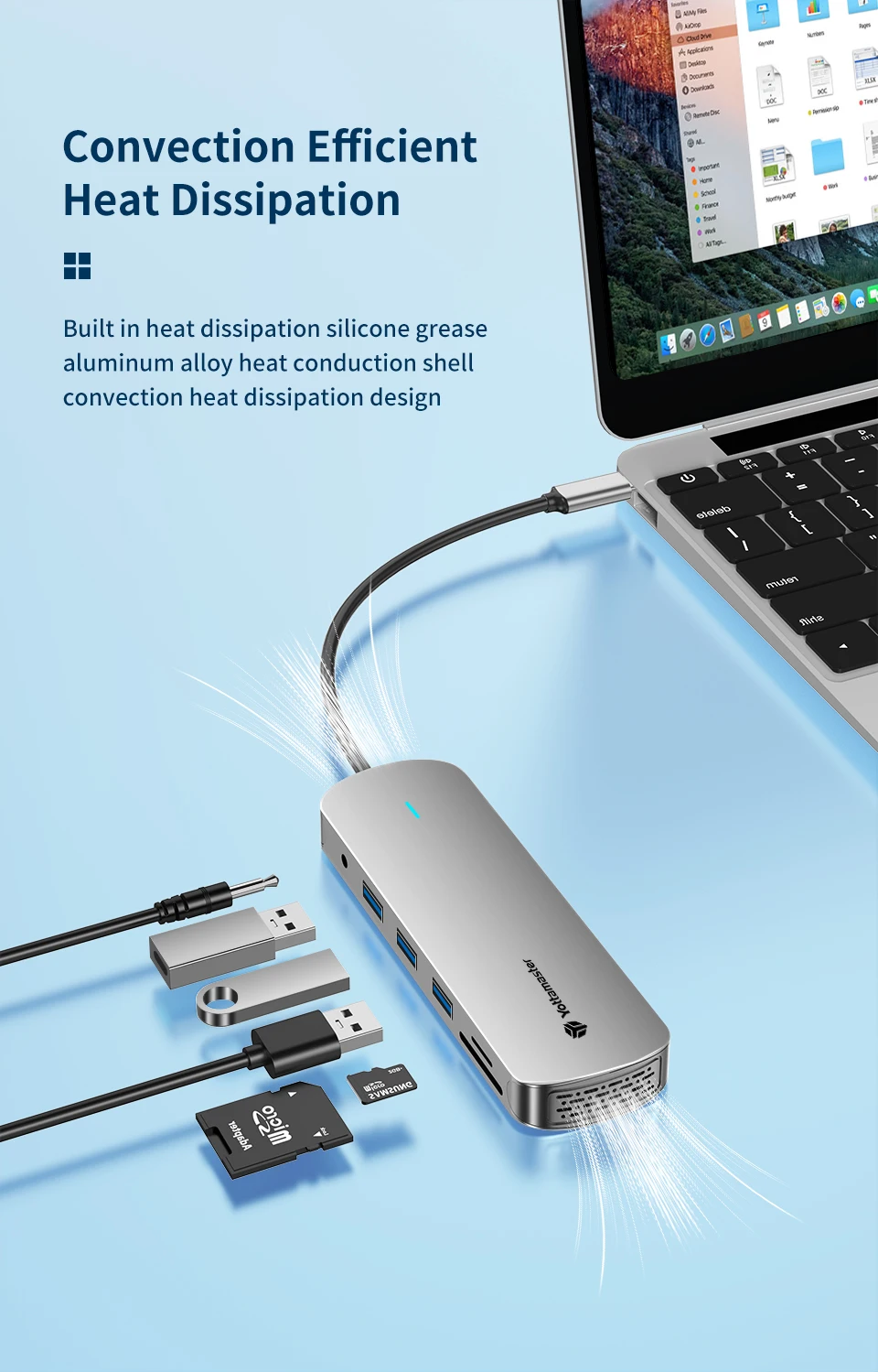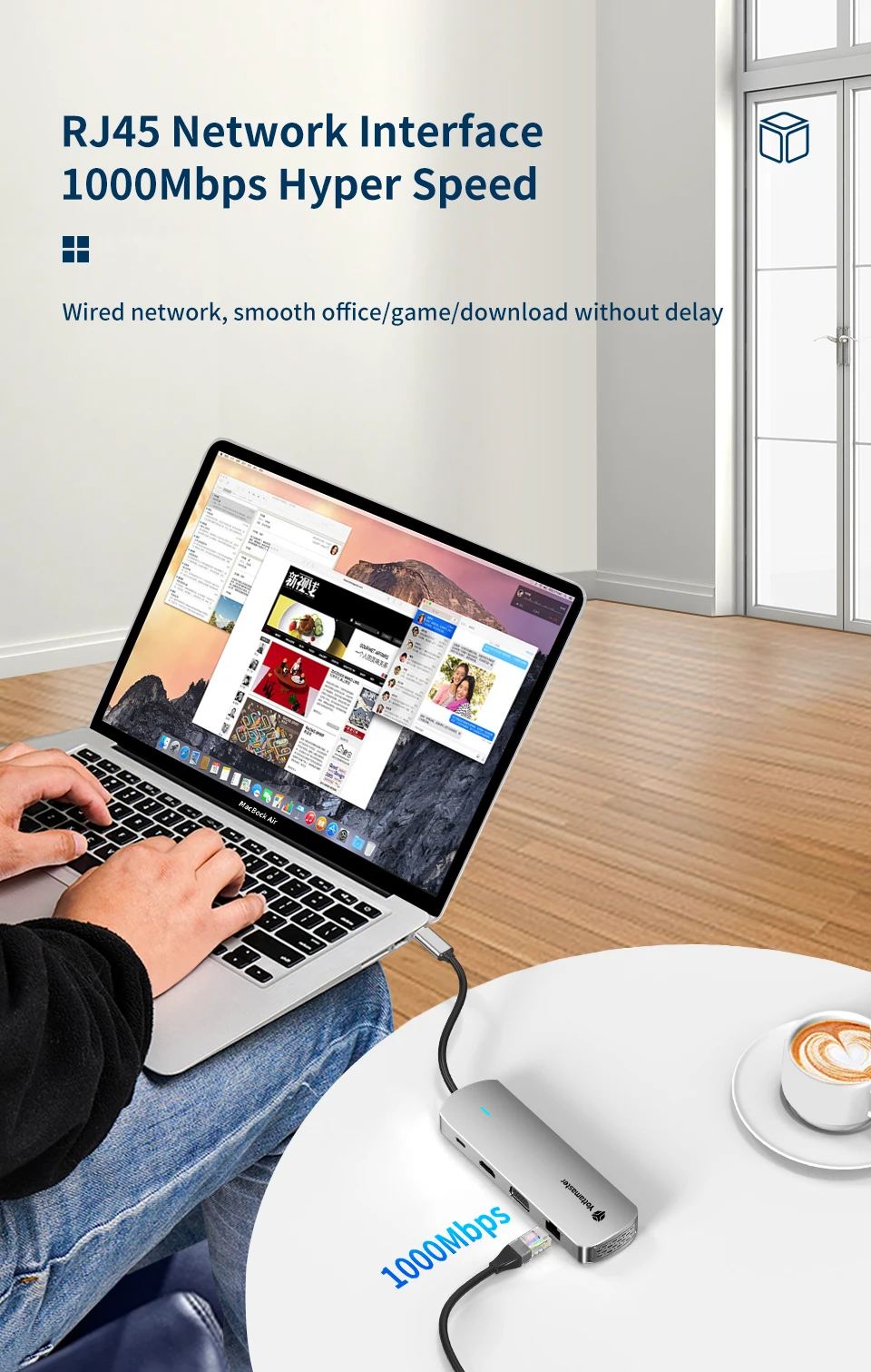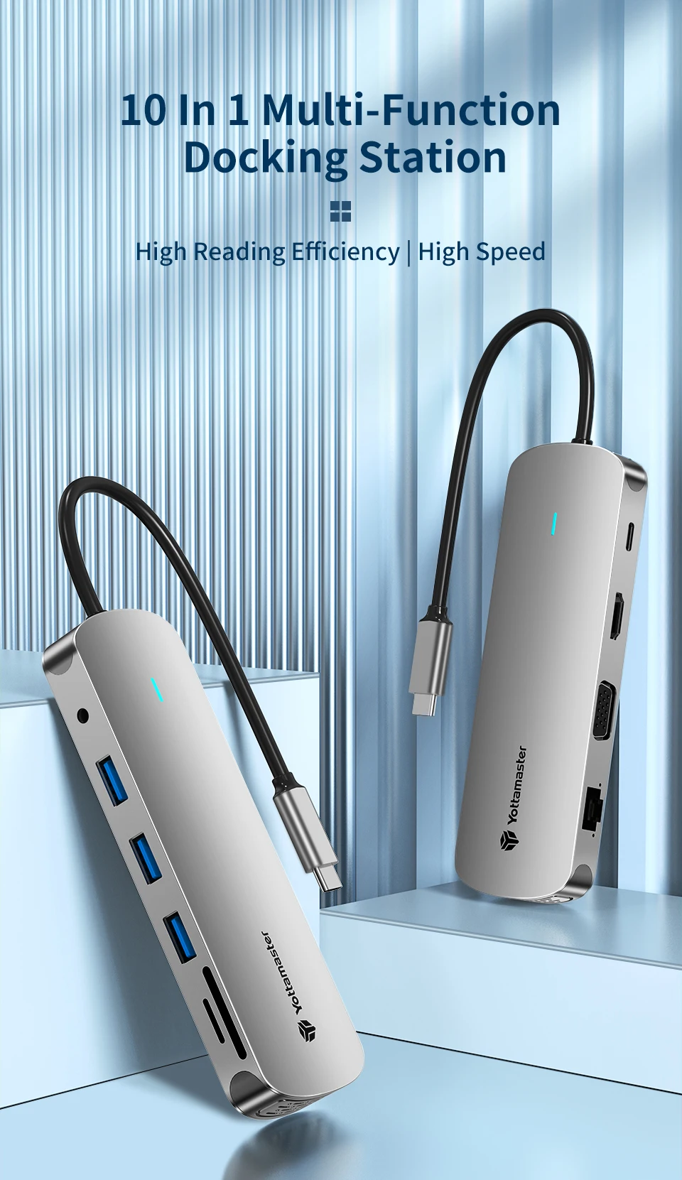 Comprar Yottamaster-concentrador de red USB tipo C, 10 en 1, divisor A 10gbps, USB 3,1, USB3.1/RJ45/ SD/TF, Multi-fonction Dock para MacBook Air M1 M2, USB A