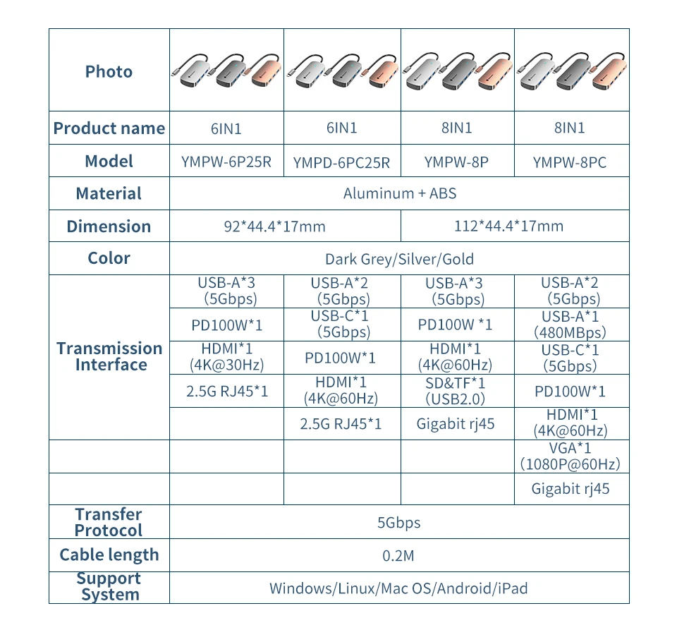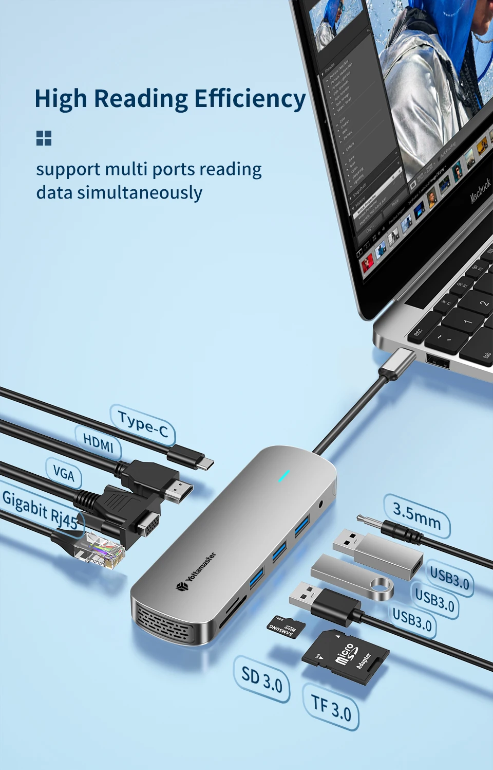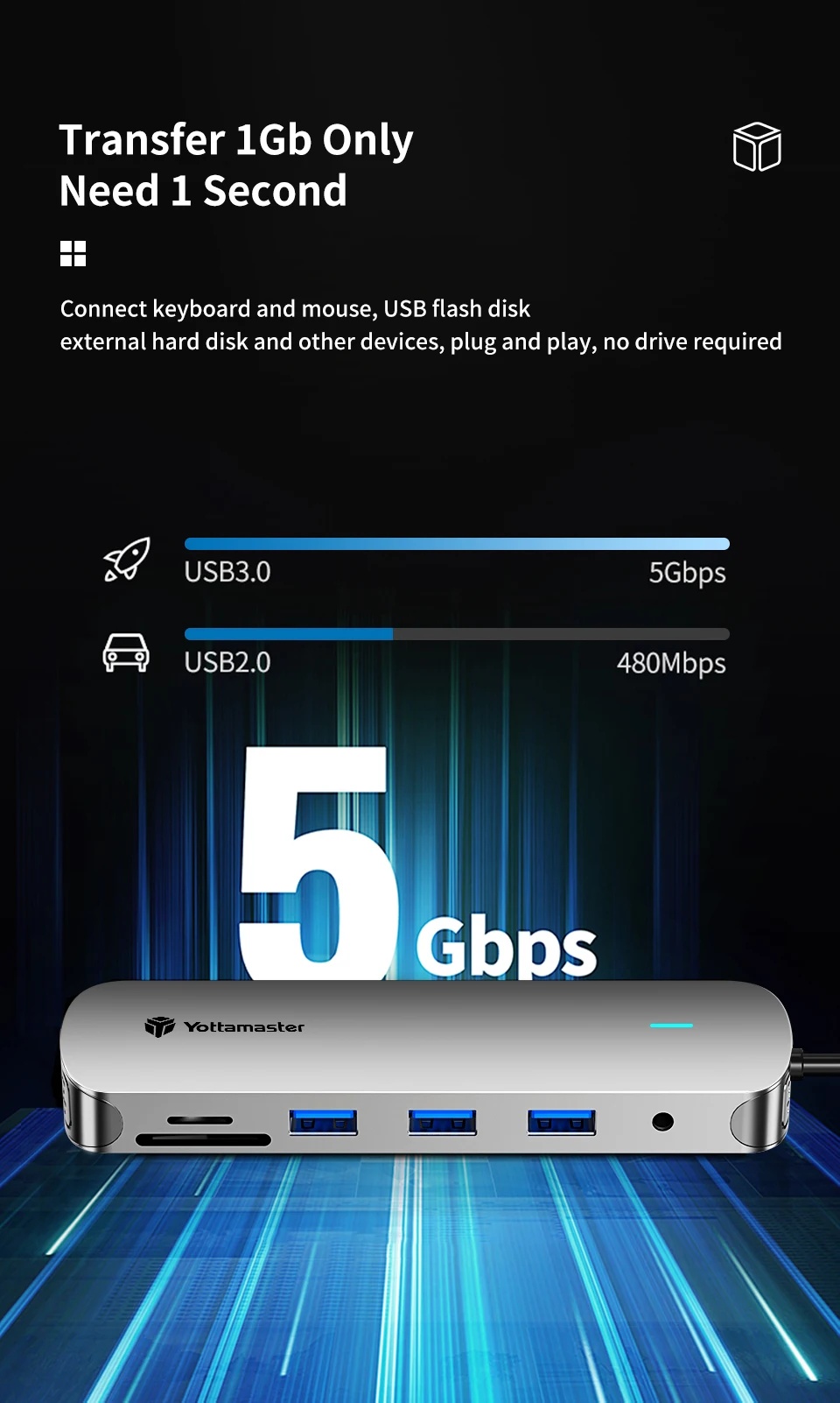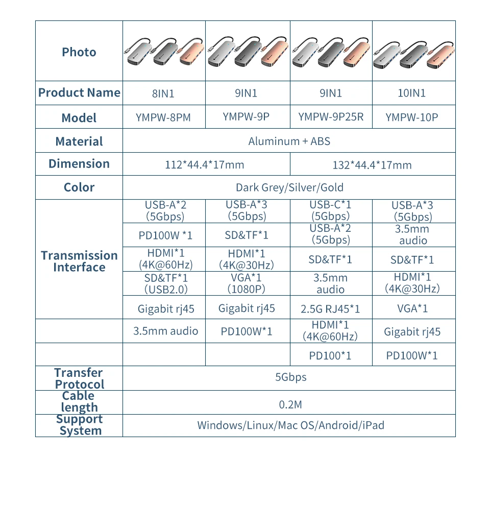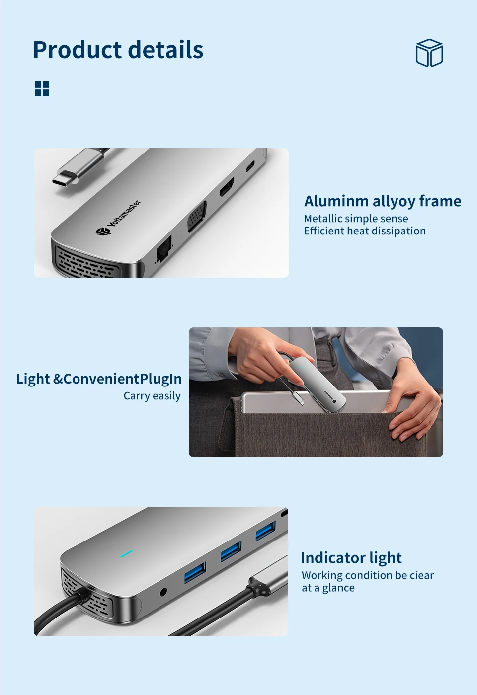 Comprar Yottamaster-concentrador de red USB tipo C, 10 en 1, divisor A 10gbps, USB 3,1, USB3.1/RJ45/ SD/TF, Multi-fonction Dock para MacBook Air M1 M2, USB A