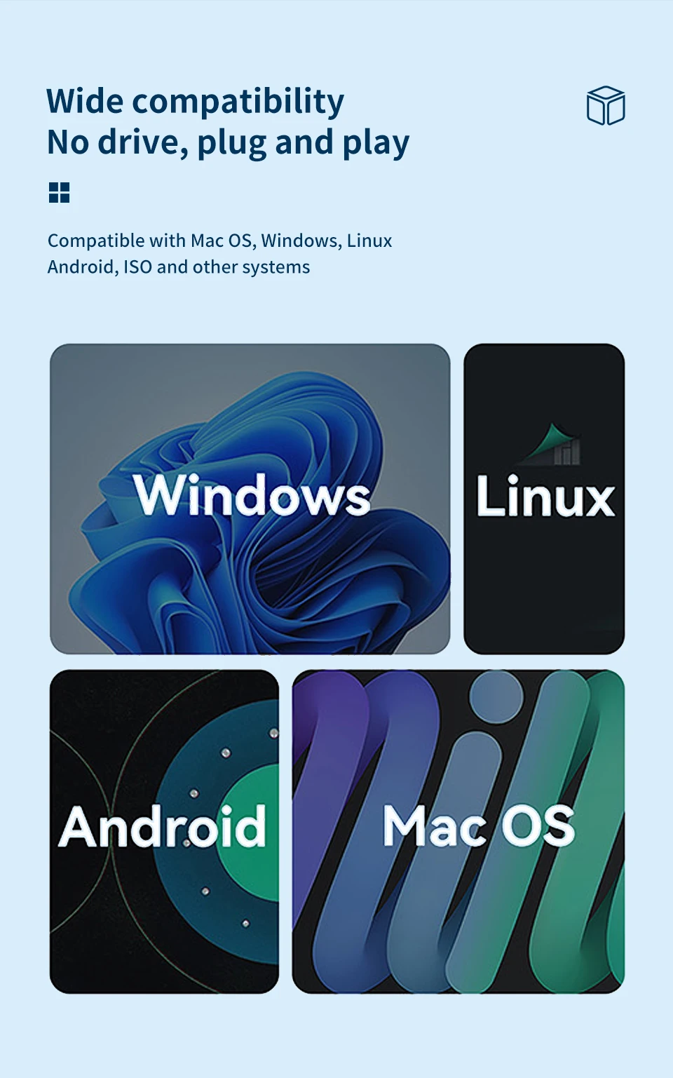 Compatible con Mac OS, Windows, Linux, Android, ISO y otros