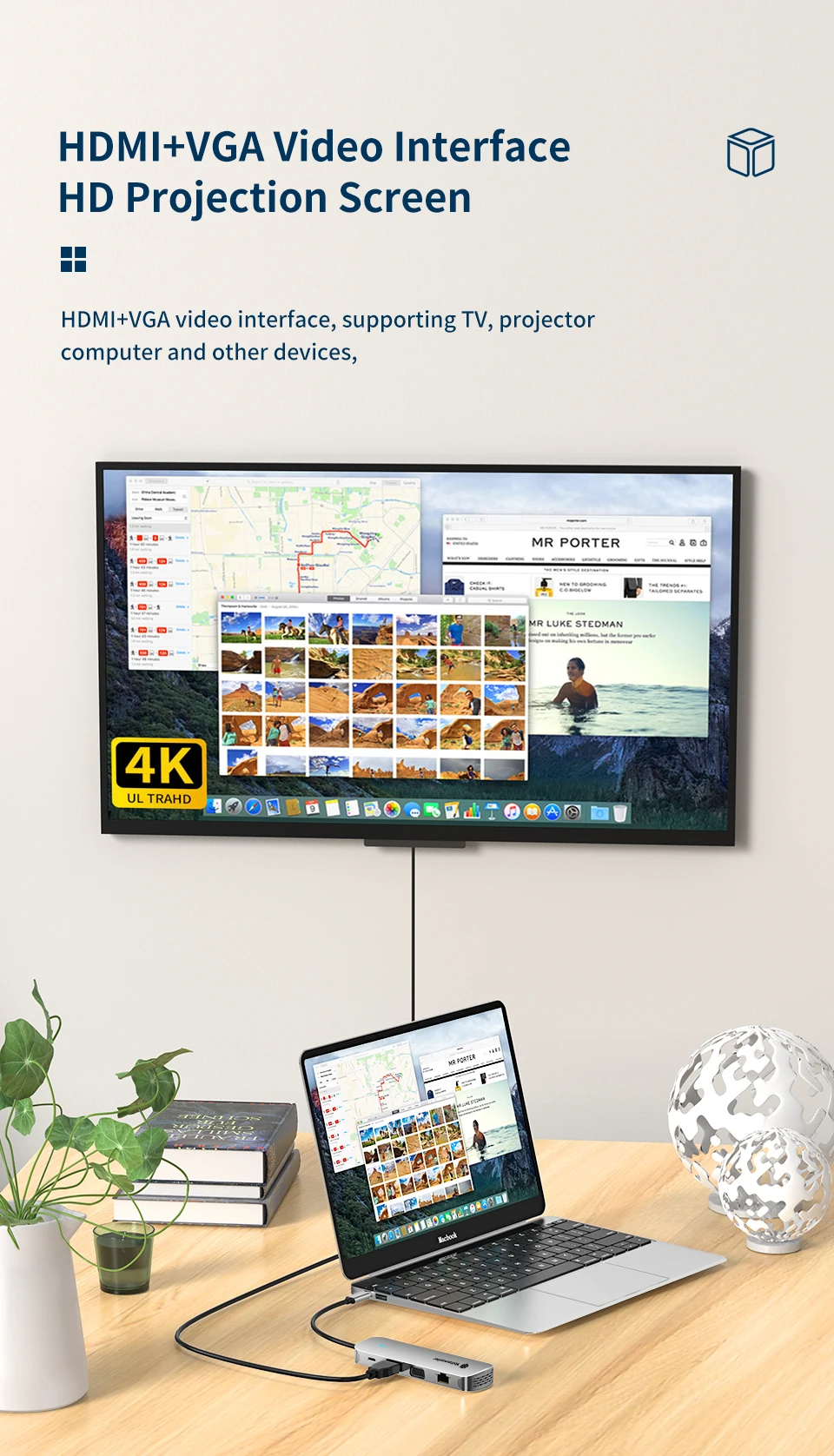 Interfaz de vídeo HDMI + VGA, compatible con TV, proyector, ordenador y