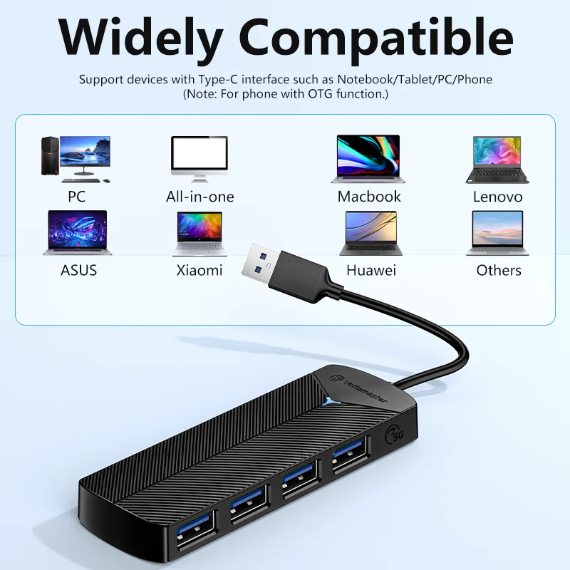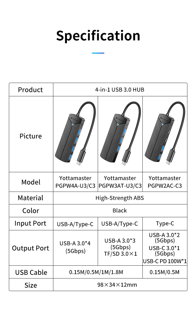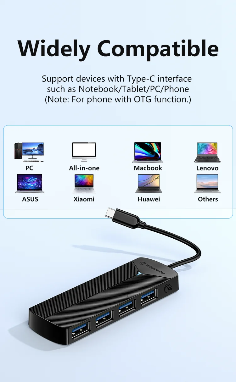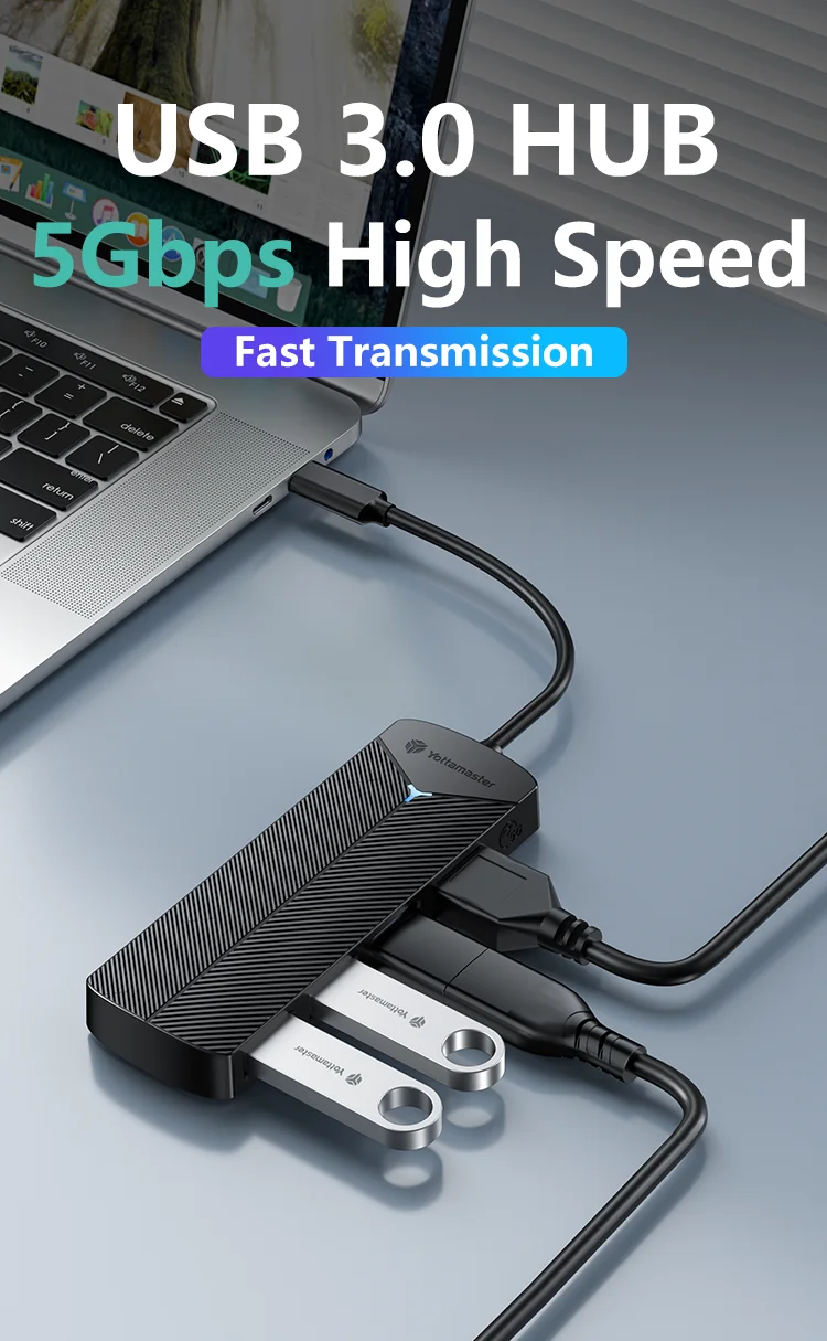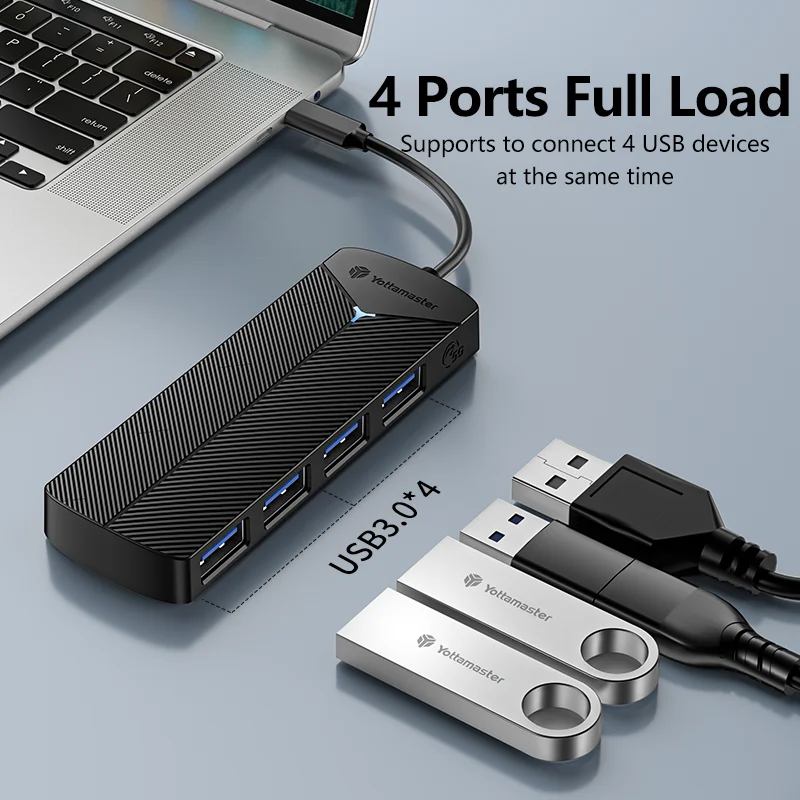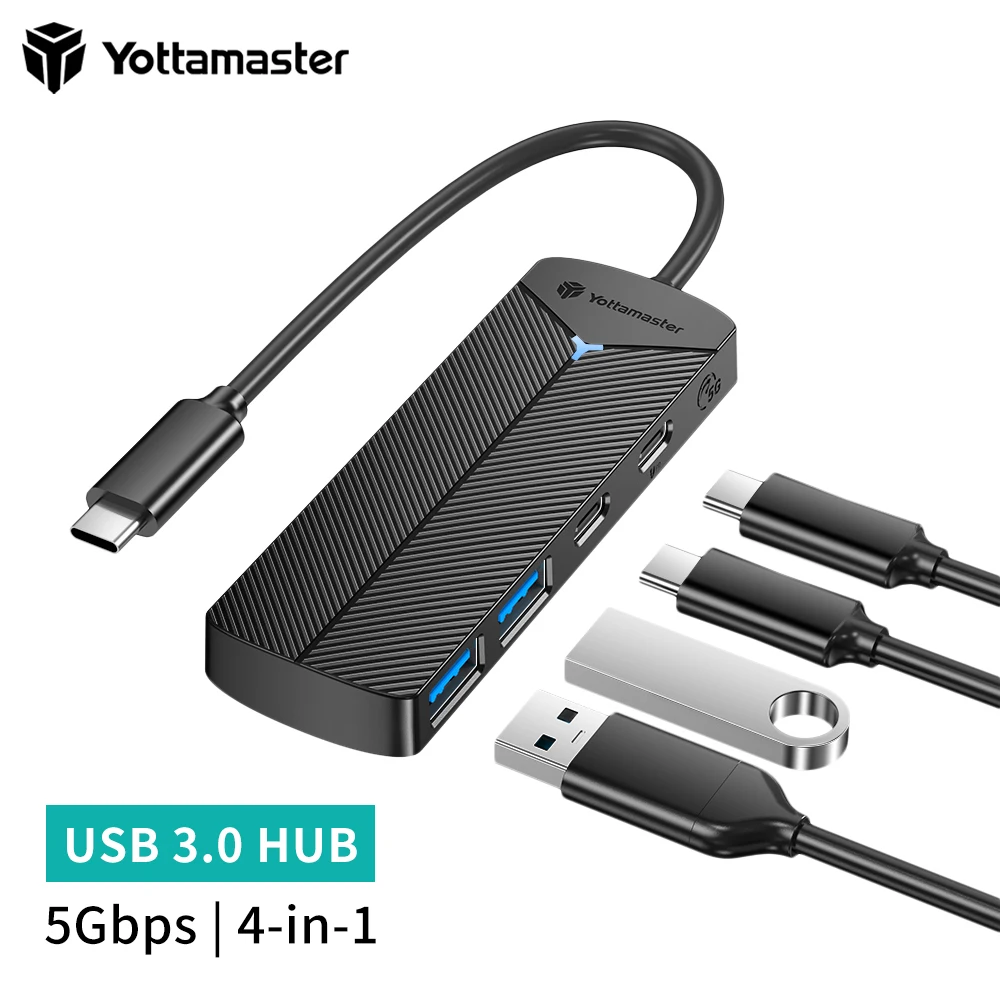 Comprar Yottamaster-concentrador de red USB TYPE-C, divisor lateral de 4 puertos, adaptador USB 3,0x4, 5gbps, base de expansión, adaptador OTG ultrafino