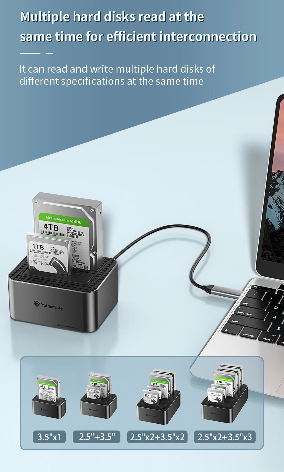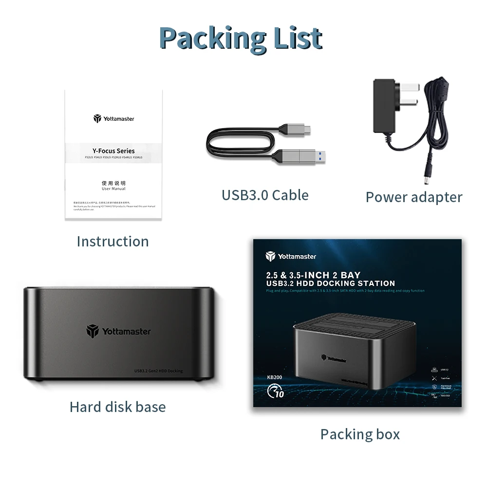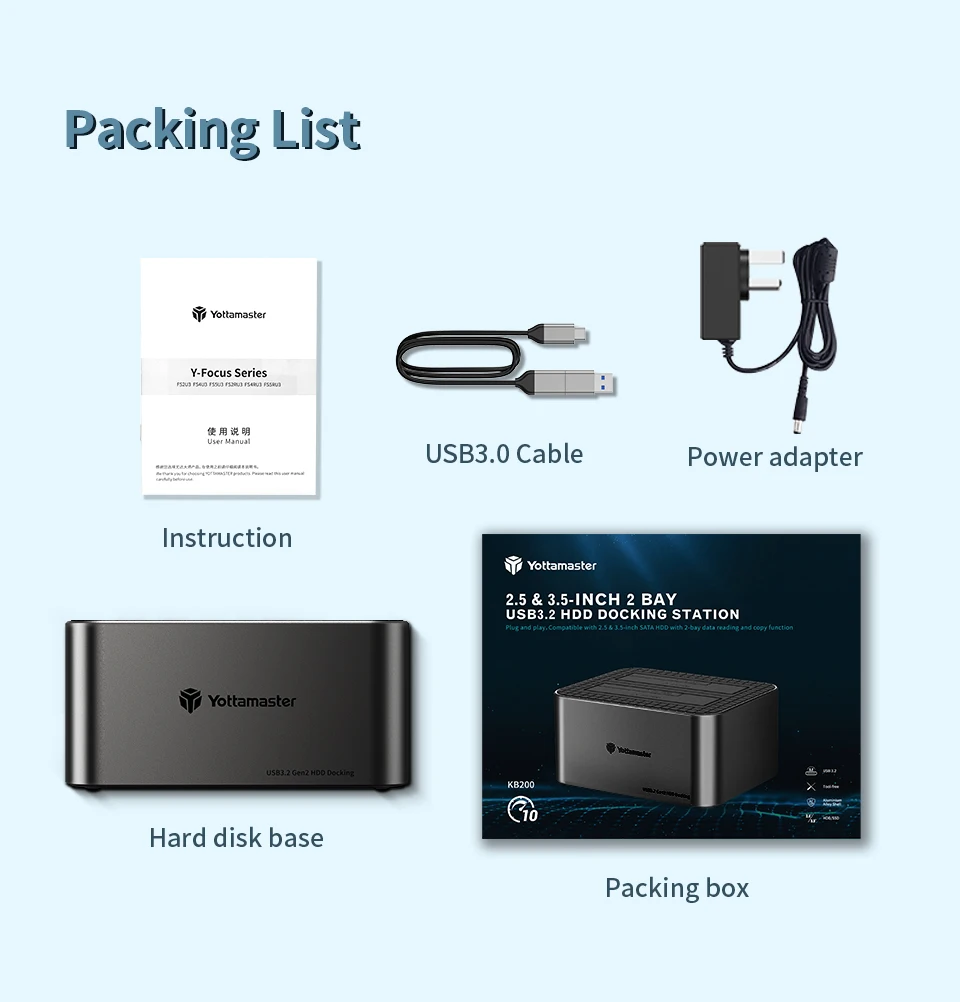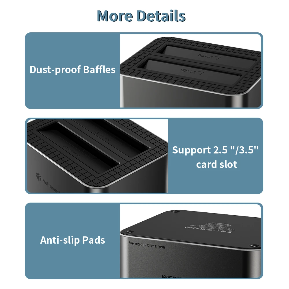 Comprar Yottamaster-estación de acoplamiento de disco duro KB100 2Bay tipo C, 10Gbps, 2,5 "/3,5", HDD, 2,5 y 3,5 ", HDD/SSD, SATA3.0, UASP