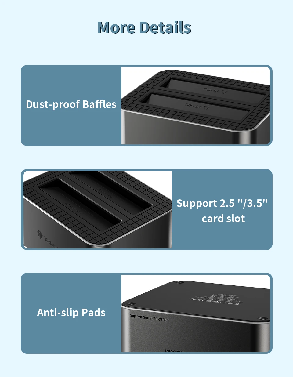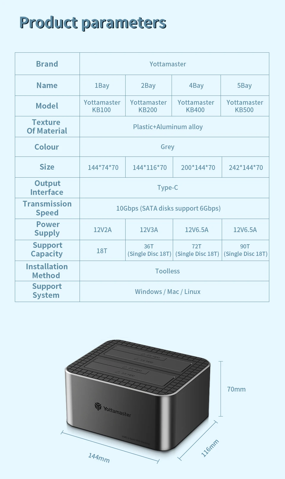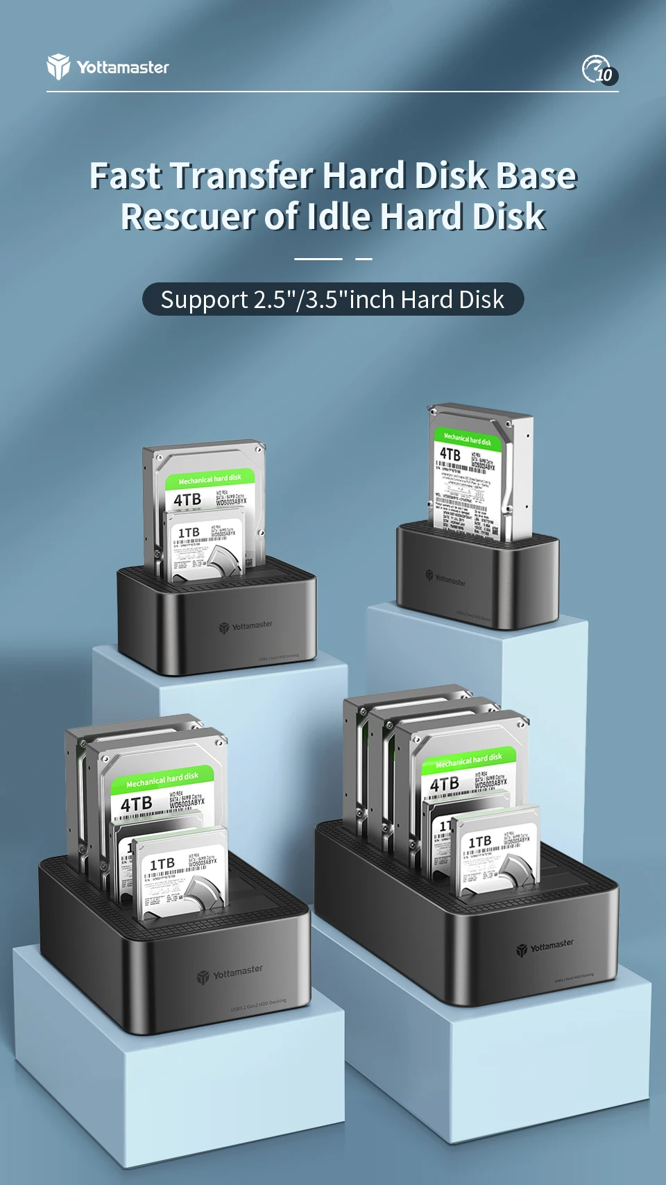 Comprar Yottamaster-estación de acoplamiento de disco duro KB100 2Bay tipo C, 10Gbps, 2,5 "/3,5", HDD, 2,5 y 3,5 ", HDD/SSD, SATA3.0, UASP