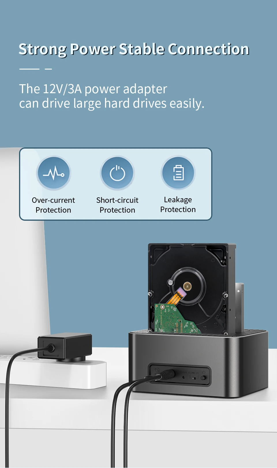 El adaptador de corriente 12V/3A puede conducir discos duros grandes fácilmente