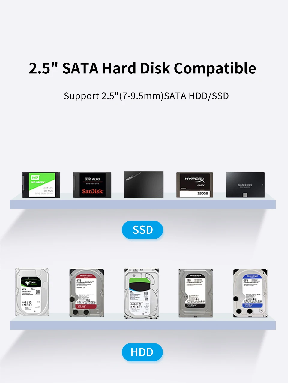 Admite disco duro/SSD SATA de 2,5"(7-9,5 CM)